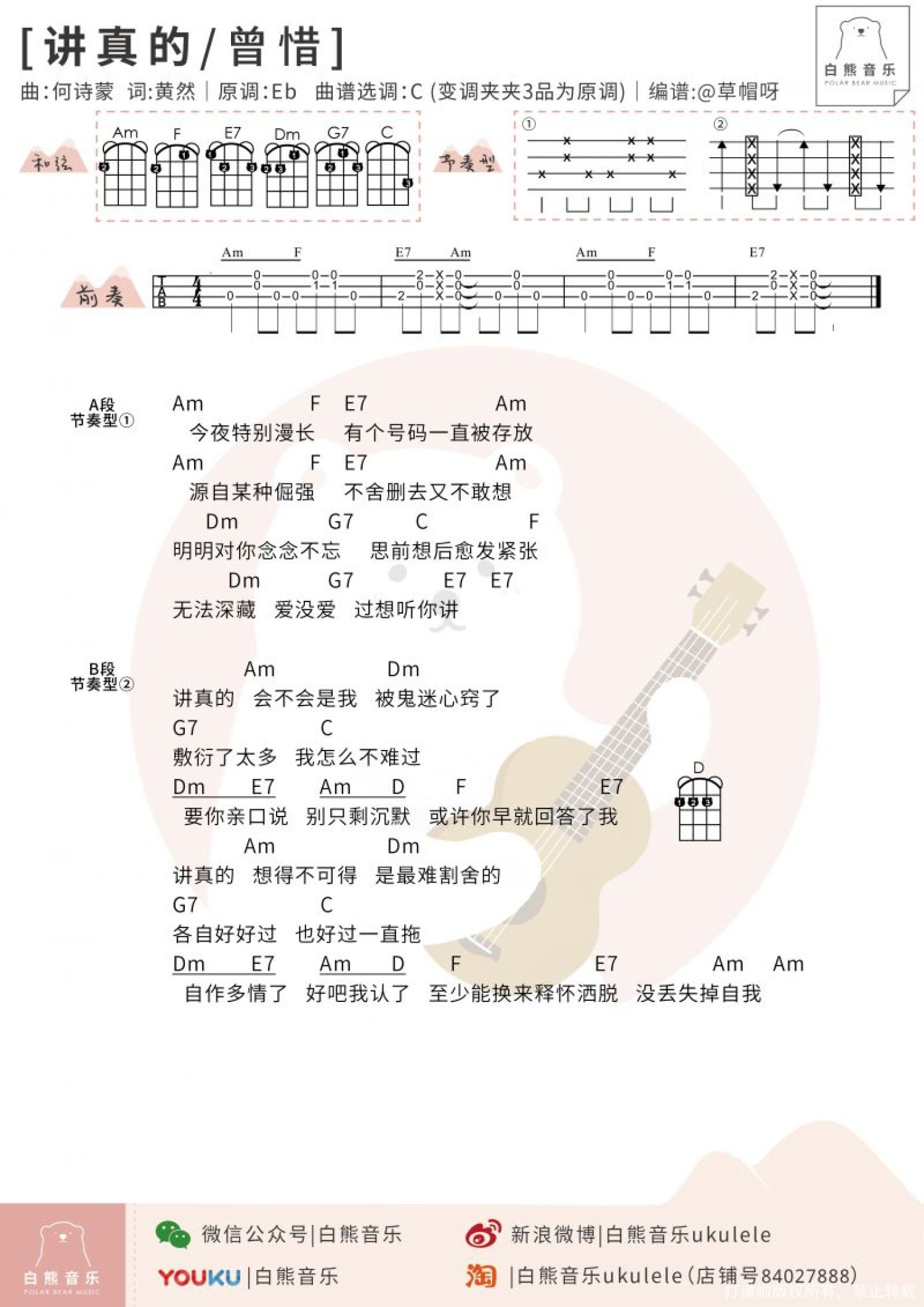 曲谱介绍: 《讲真的》尤克里里弹唱谱