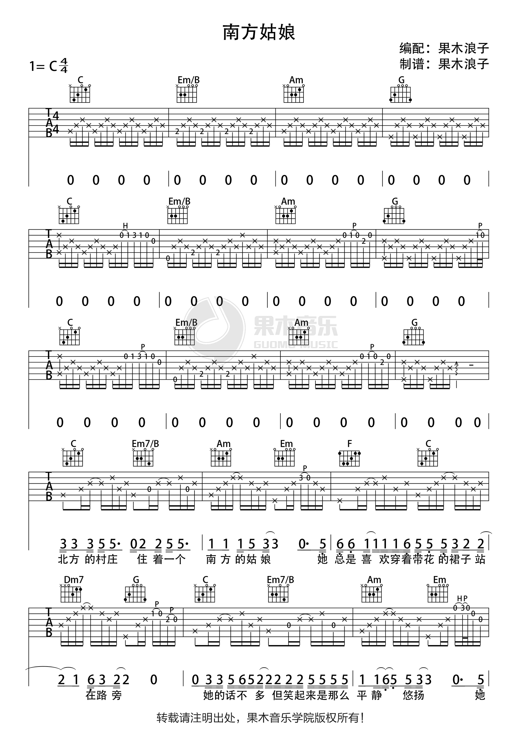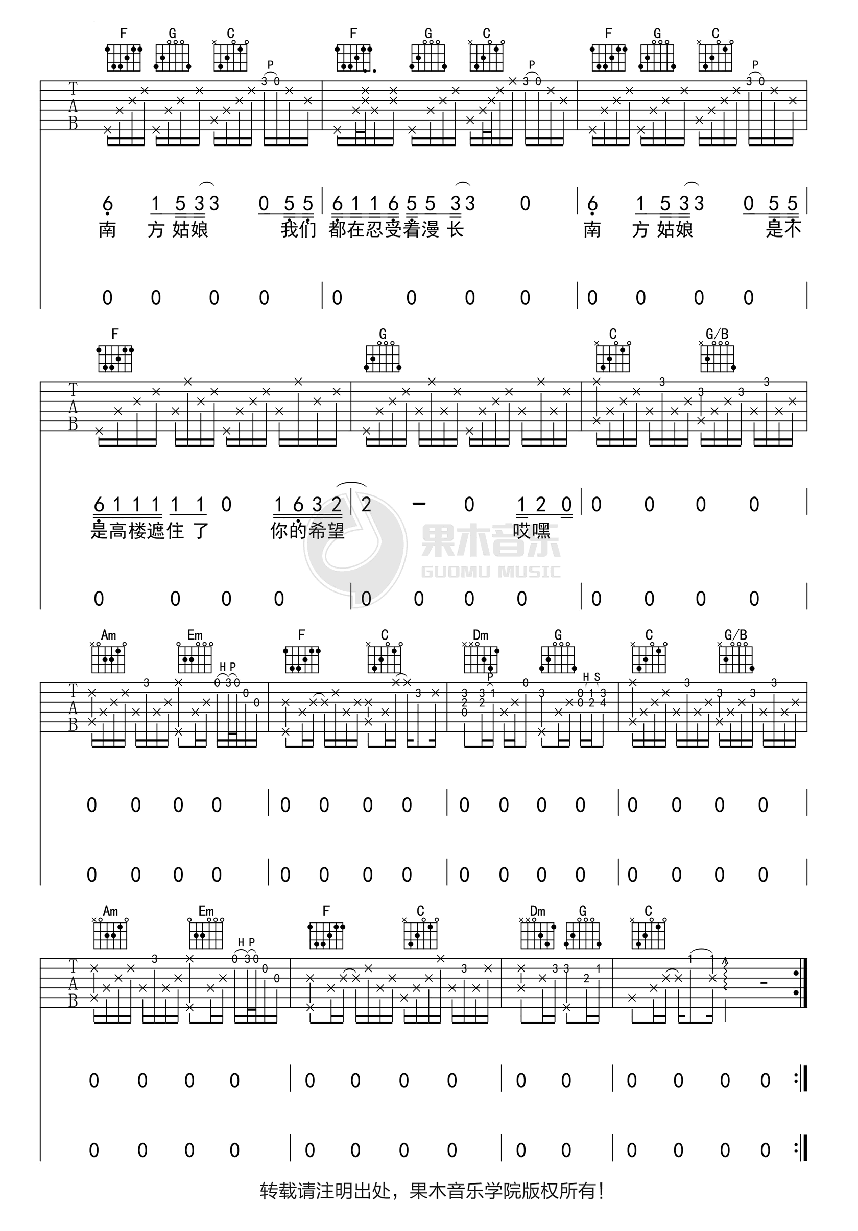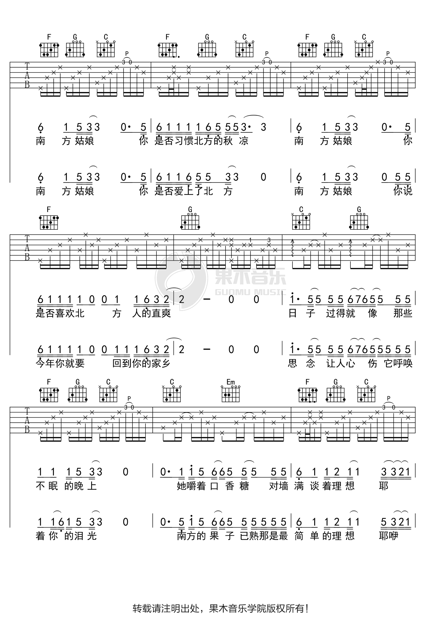 当前位置:琴谱网>吉他弹唱>南方姑娘