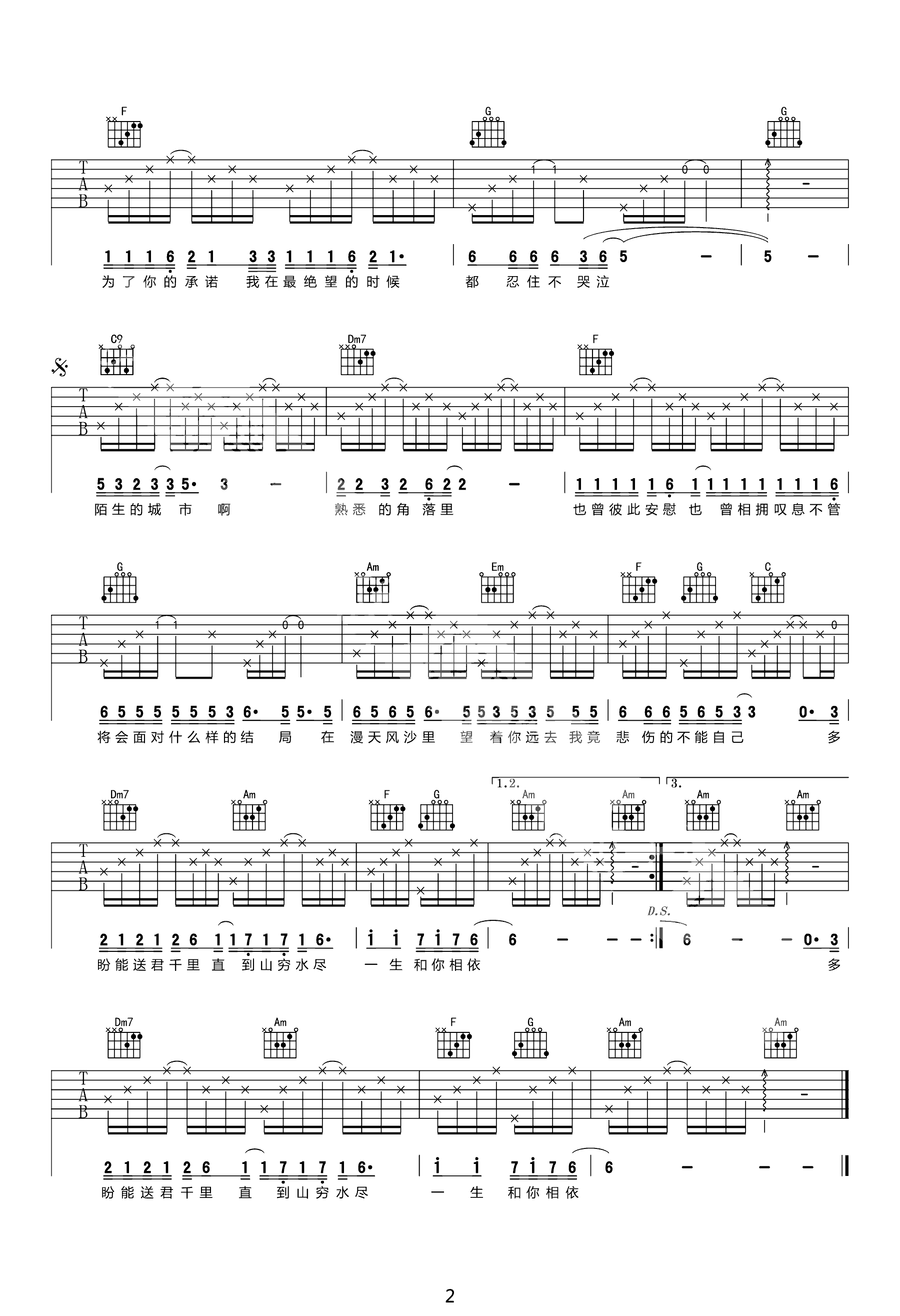 曲谱介绍: 刘明湘/李宗盛《漂洋过海来看你》吉他弹唱谱,采用C调指法编配,共有2张高清图谱,免翻页排版设计。