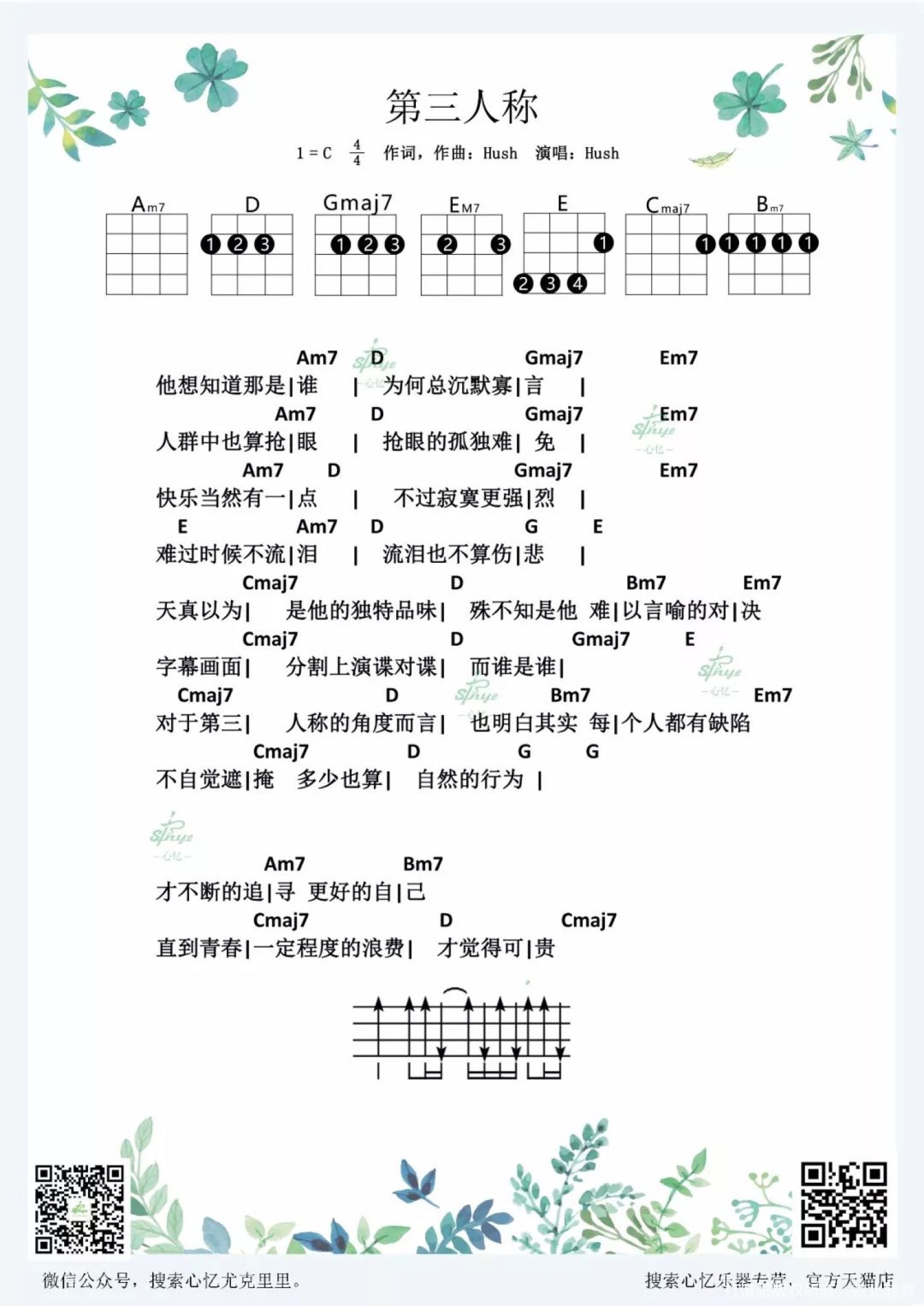 曲谱介绍: 《第三人称》尤克里里弹唱谱