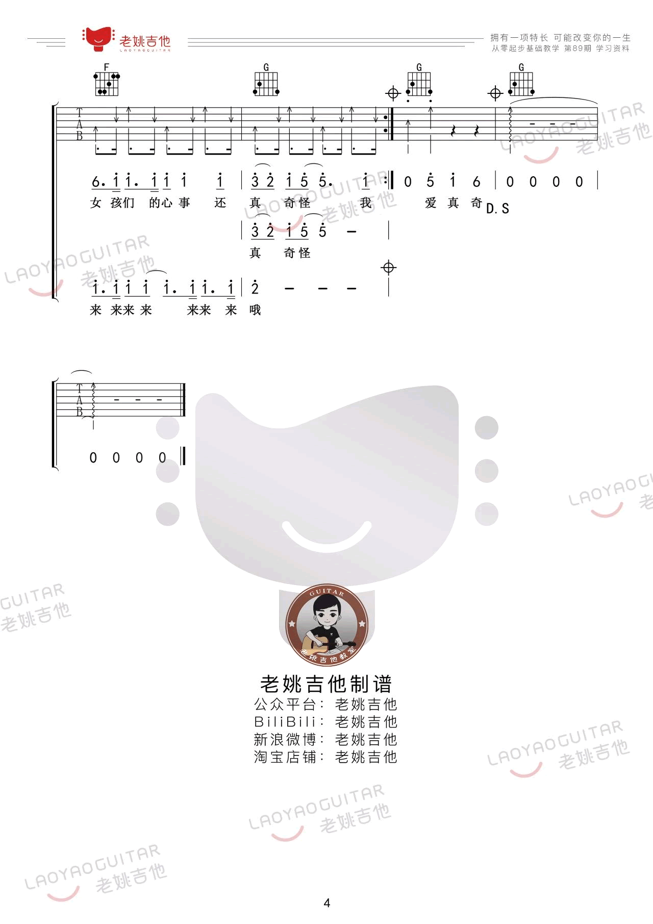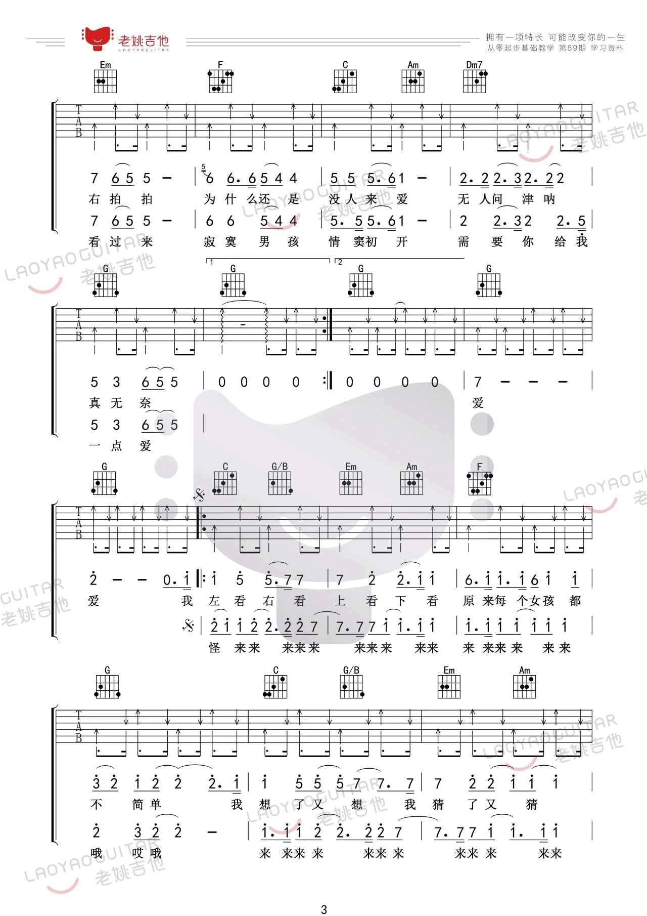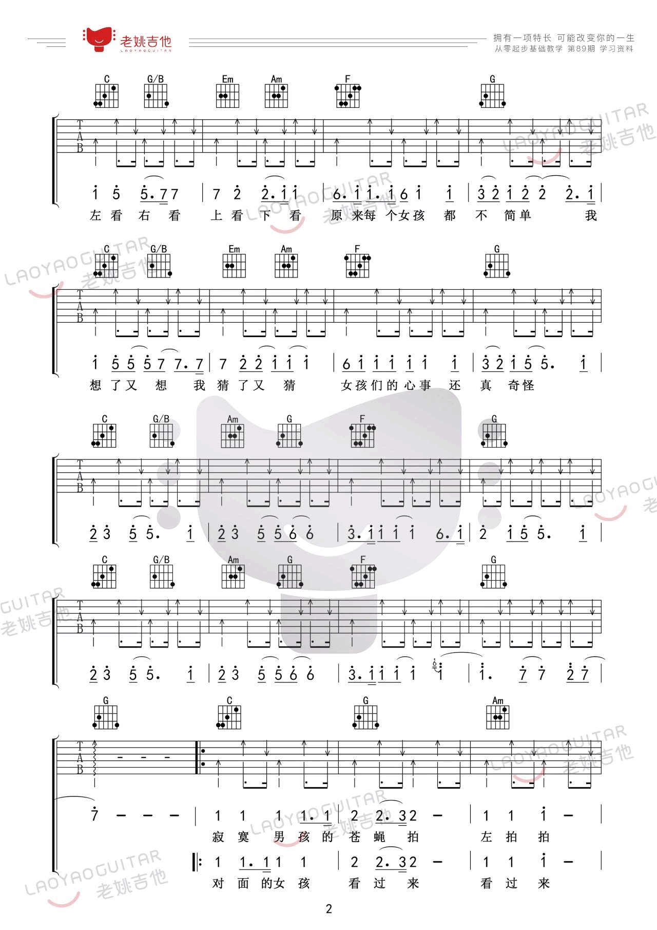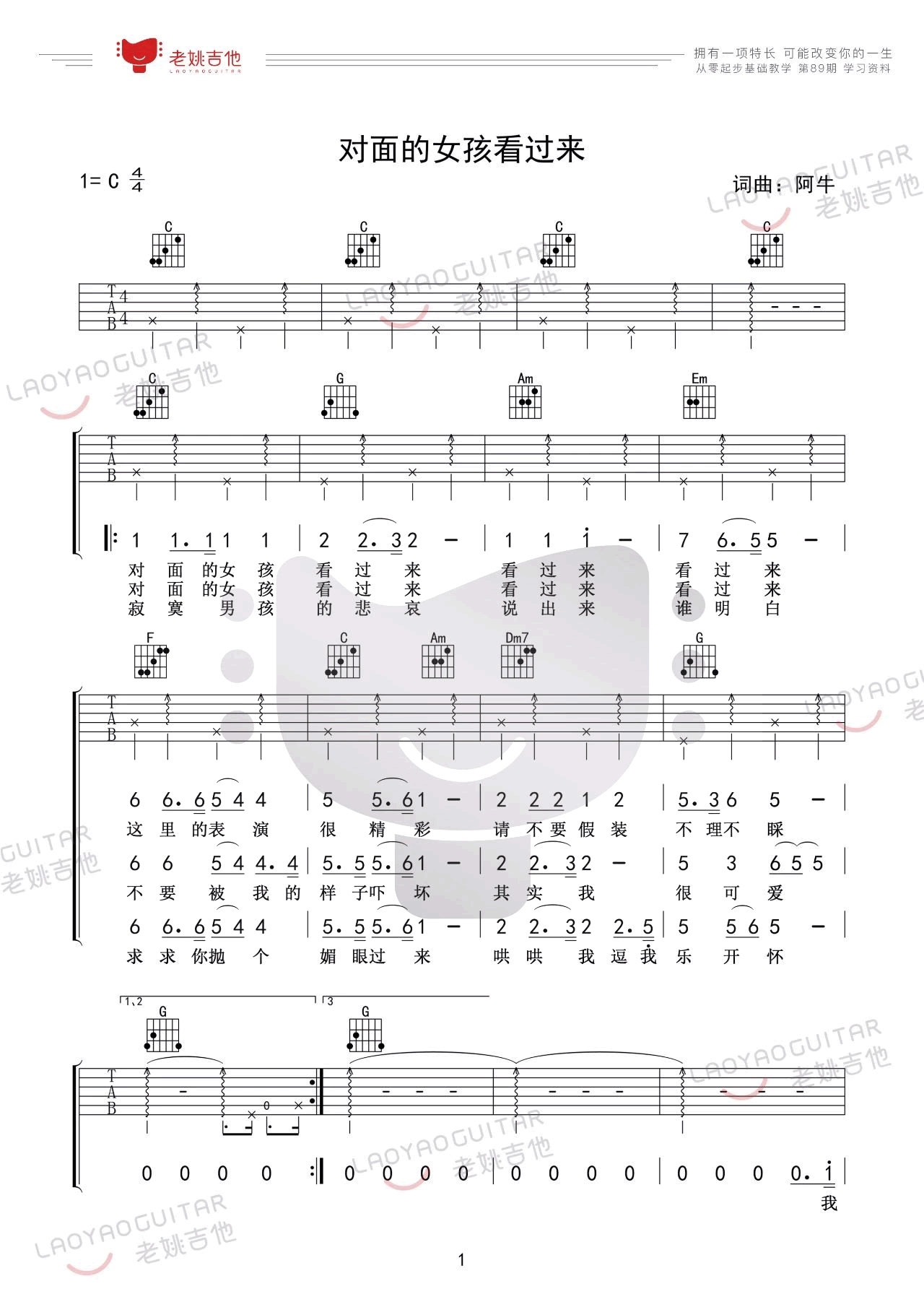曲谱介绍: 任贤齐《对面的女孩看过来》吉他弹唱谱,采用C调指法编配,共有4张高清图谱。