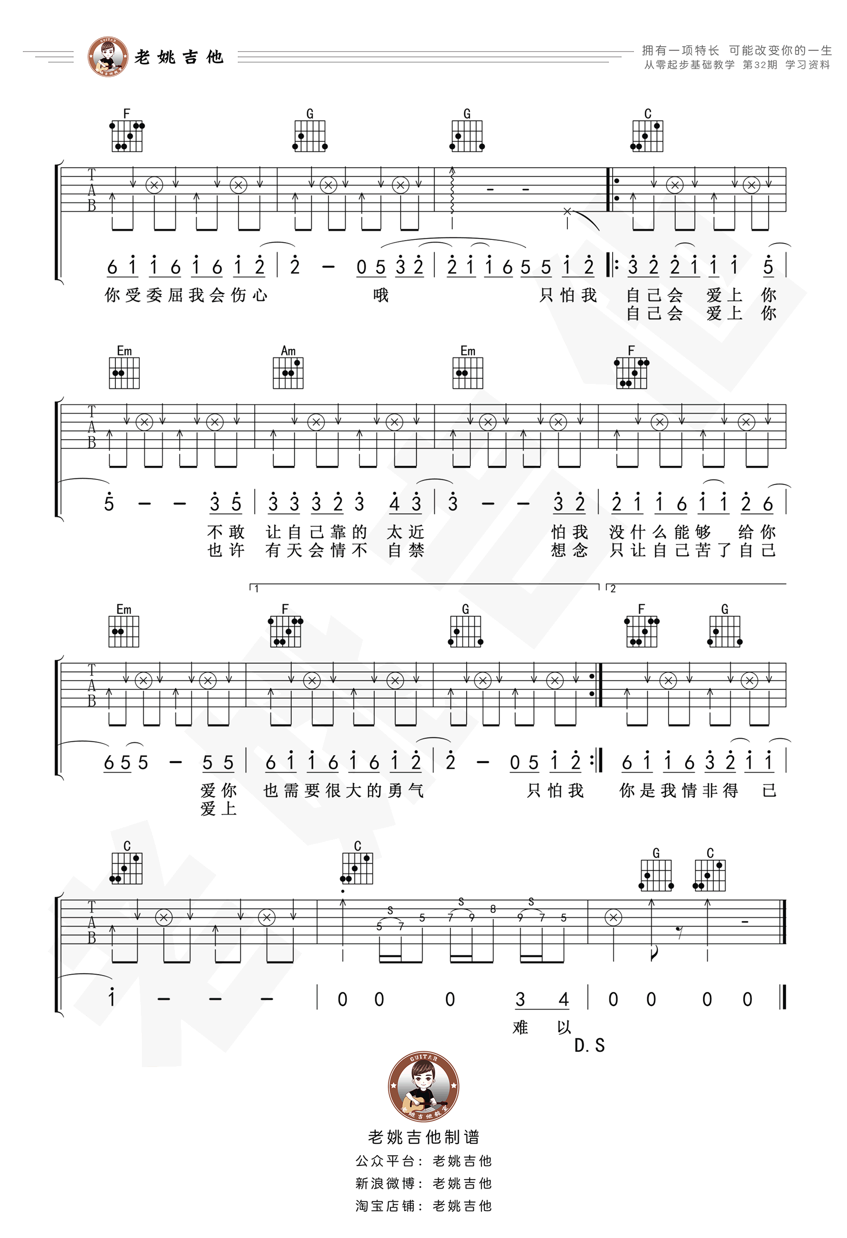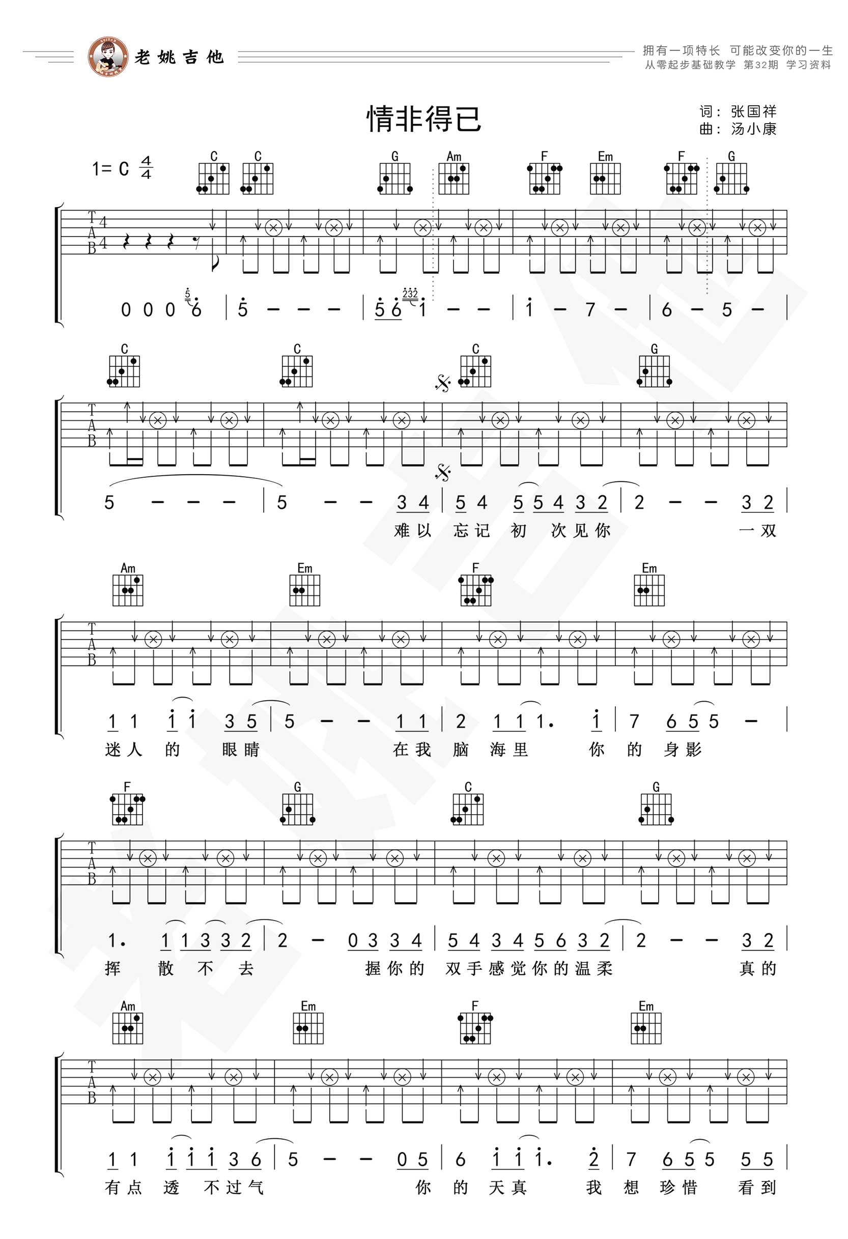 曲谱介绍: 庾澄庆《情非得已》吉他弹唱谱,采用C调指法编配,共有2张高清图谱,免翻页排版设计。