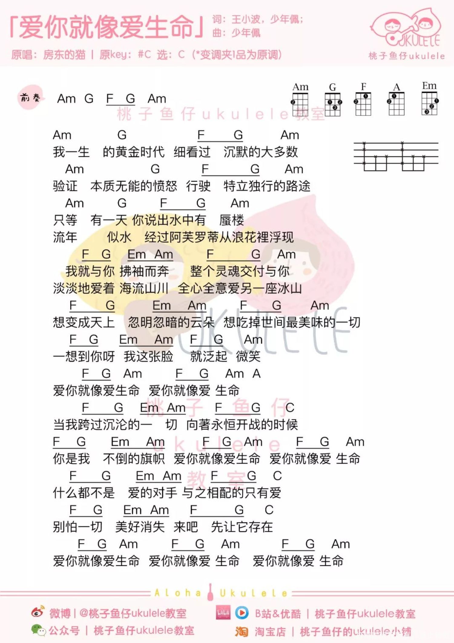 曲谱介绍: 《爱你就像爱生命》尤克里里弹唱谱