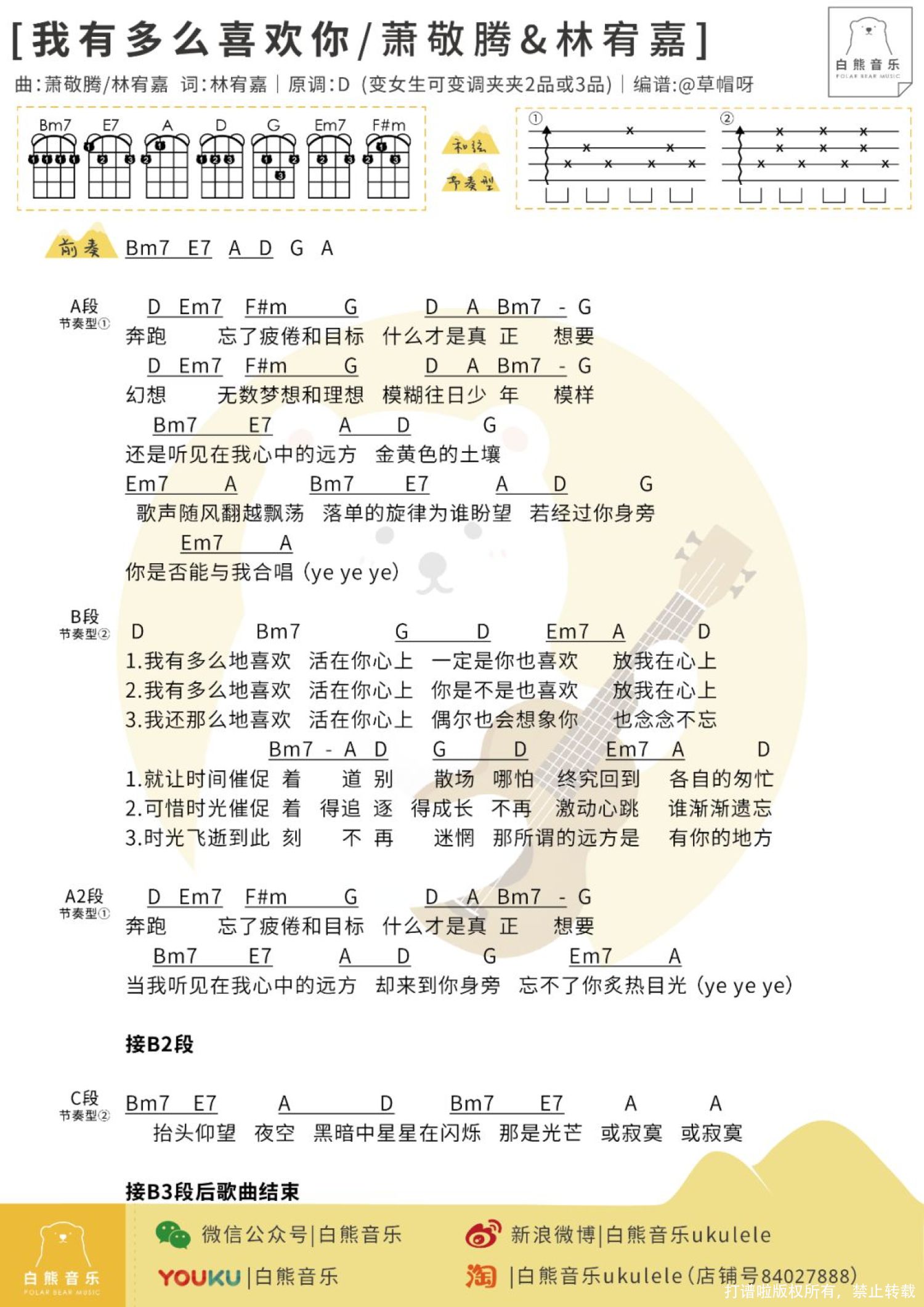 曲谱介绍: 《我有多么喜欢你》尤克里里弹唱谱