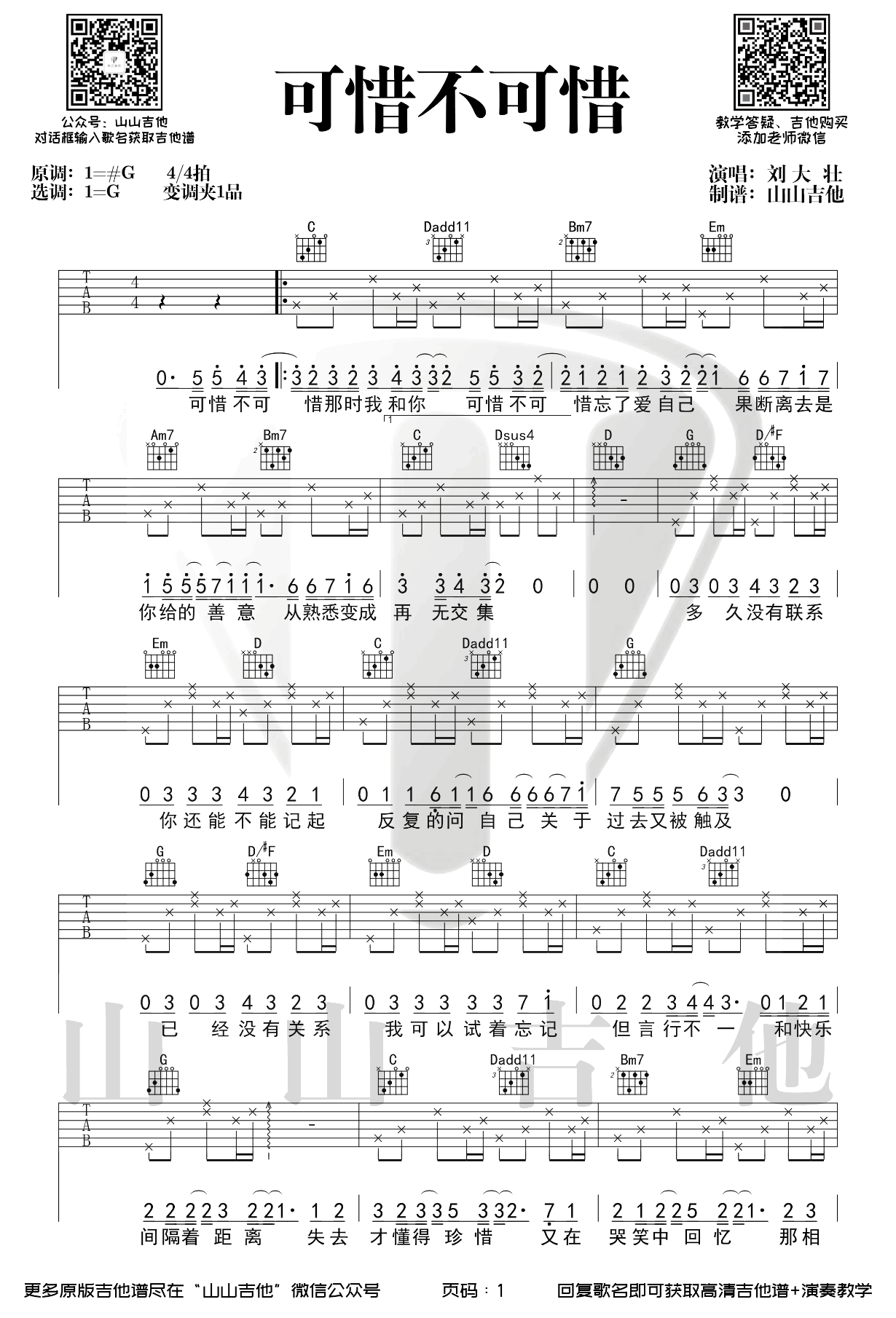 可惜不可惜吉他谱 - 刘大壮 - G调吉他弹唱谱