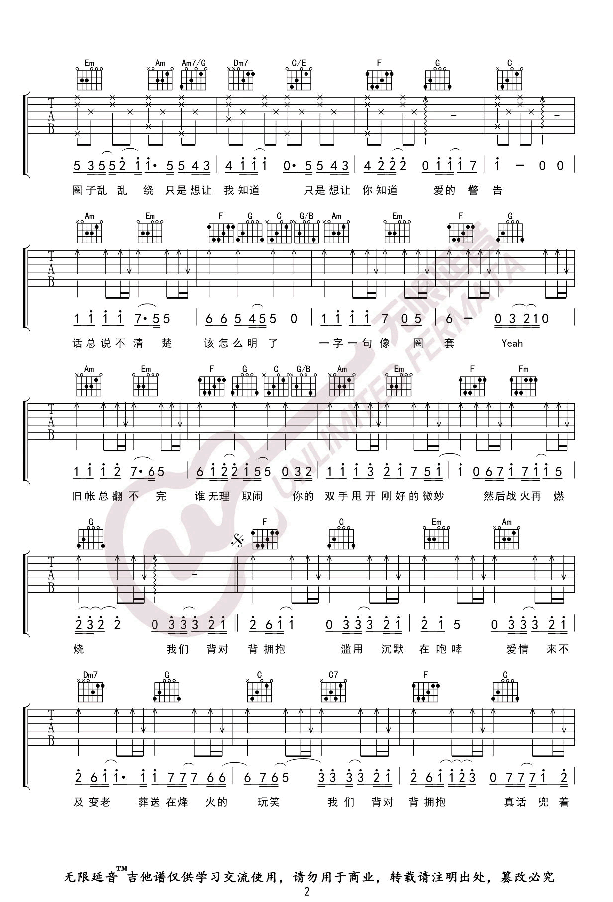 当前位置:琴谱网>吉他弹唱>背对背拥抱