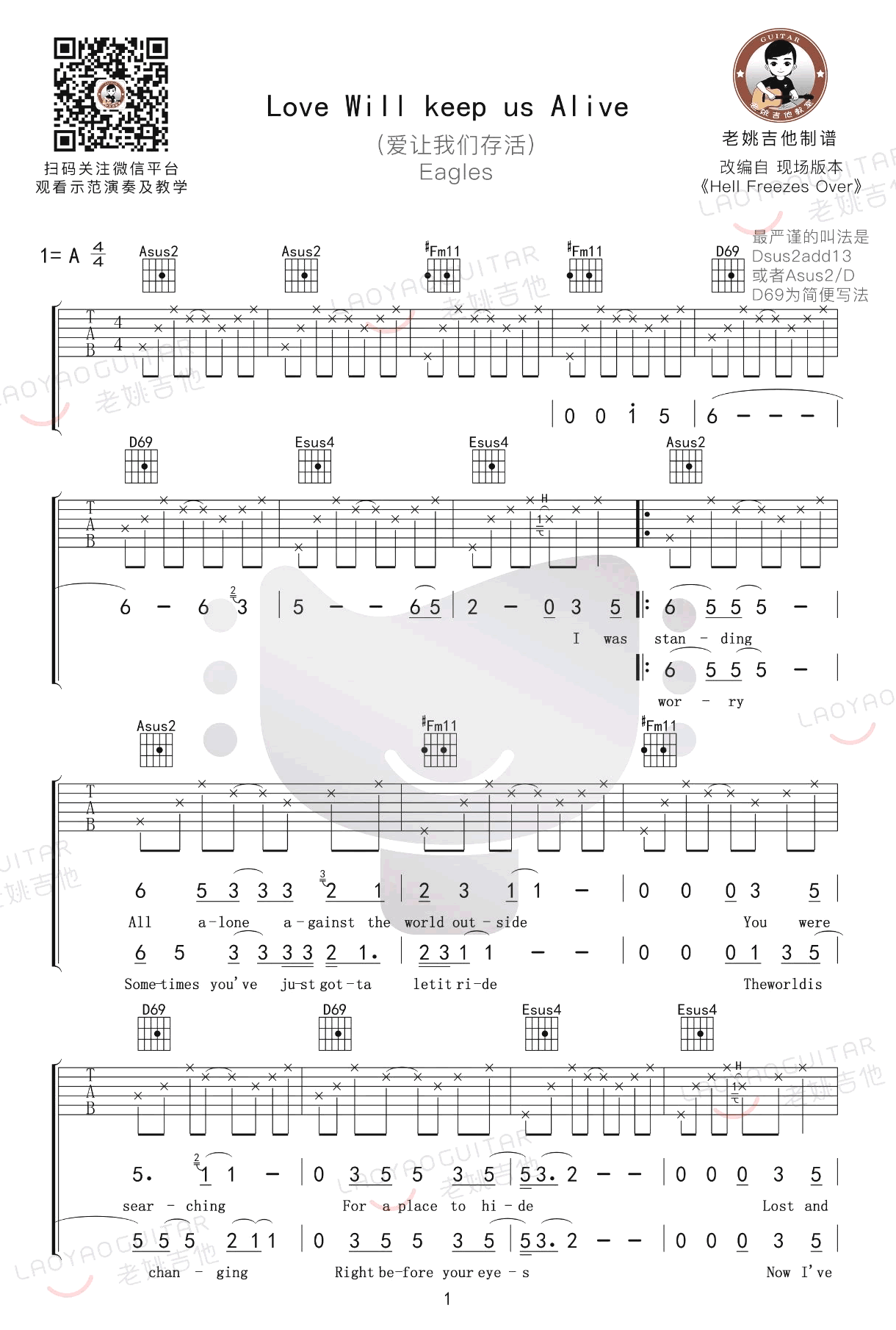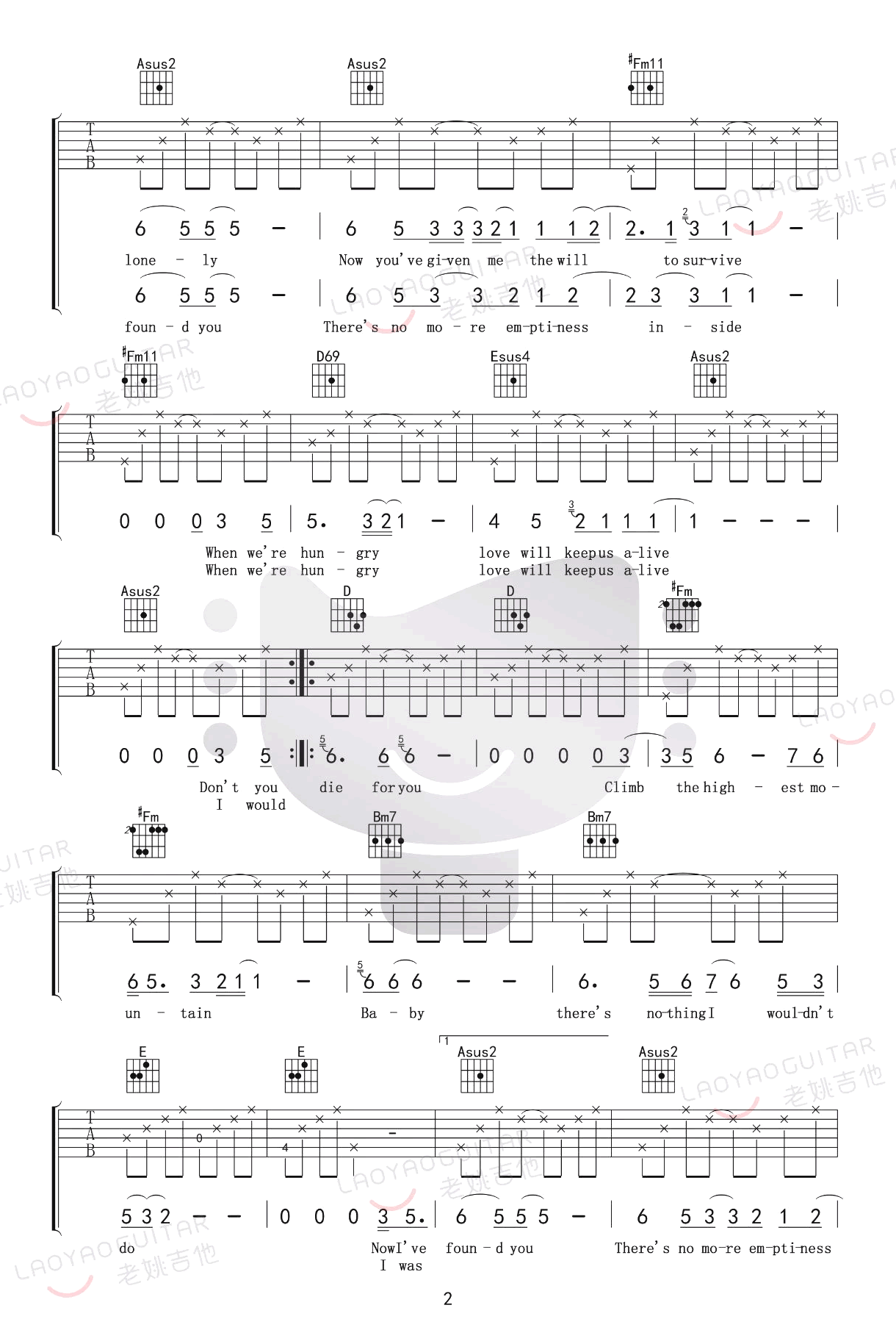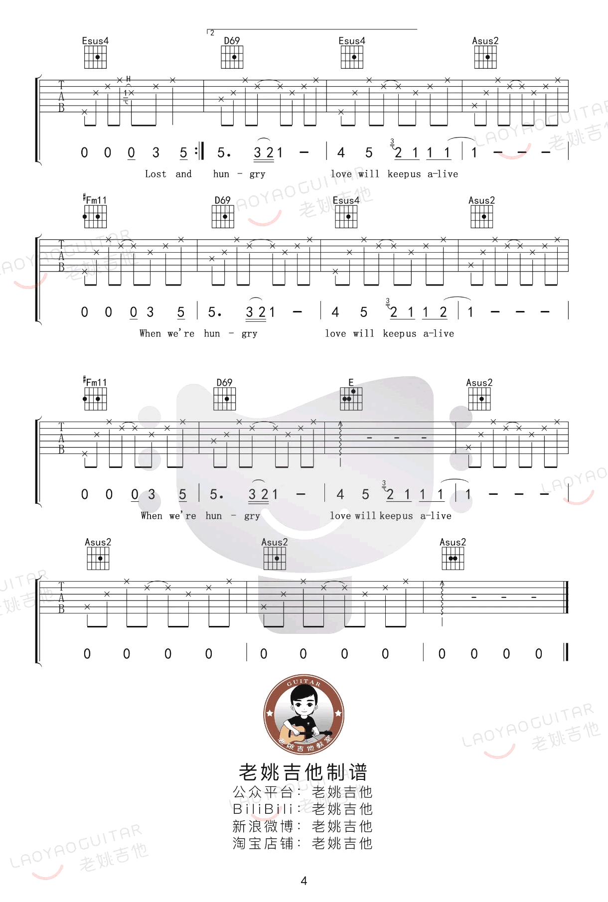 曲谱介绍: love《lovewillkeepusalive》吉他弹唱谱,共有4张高清图谱。