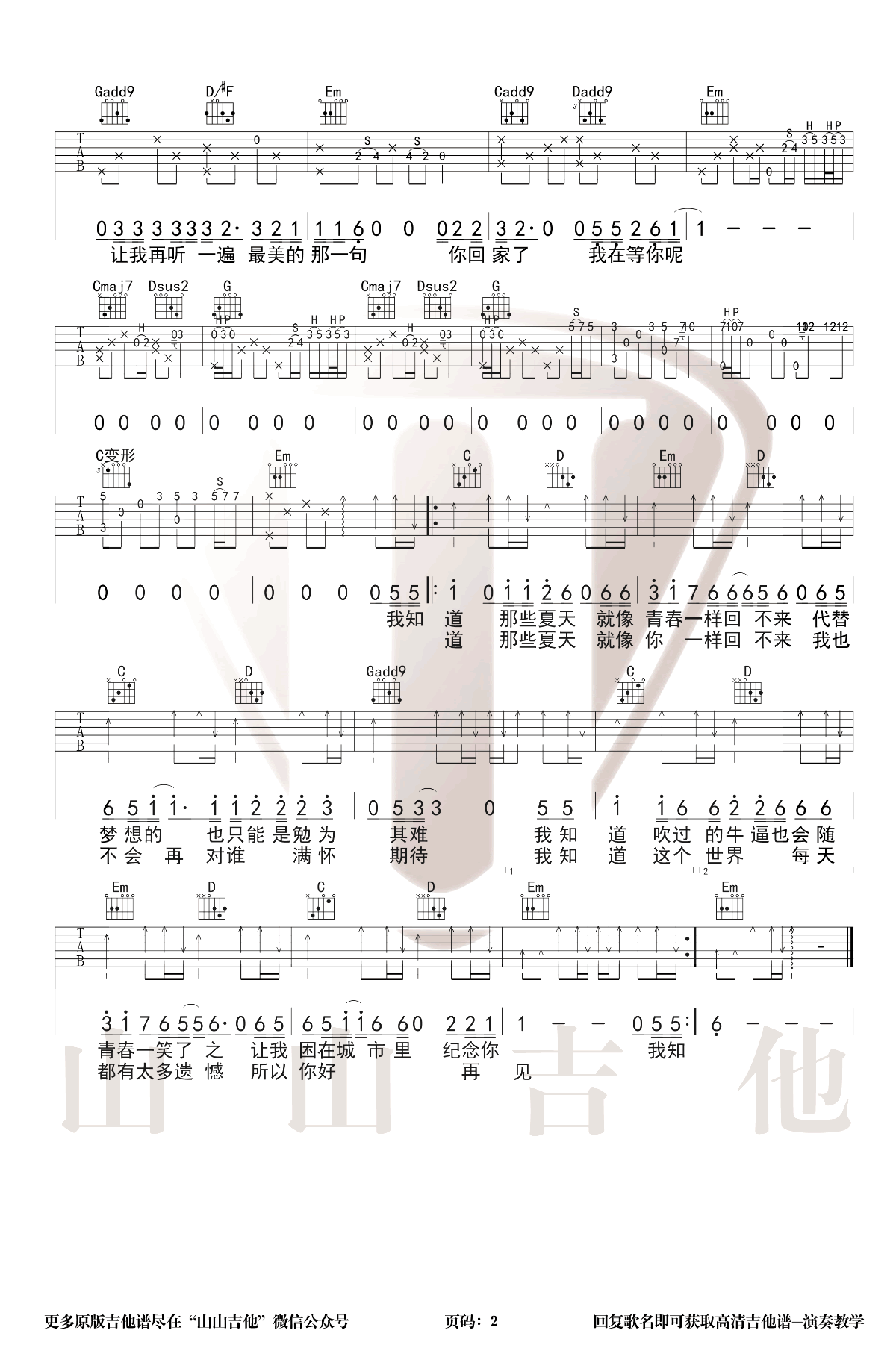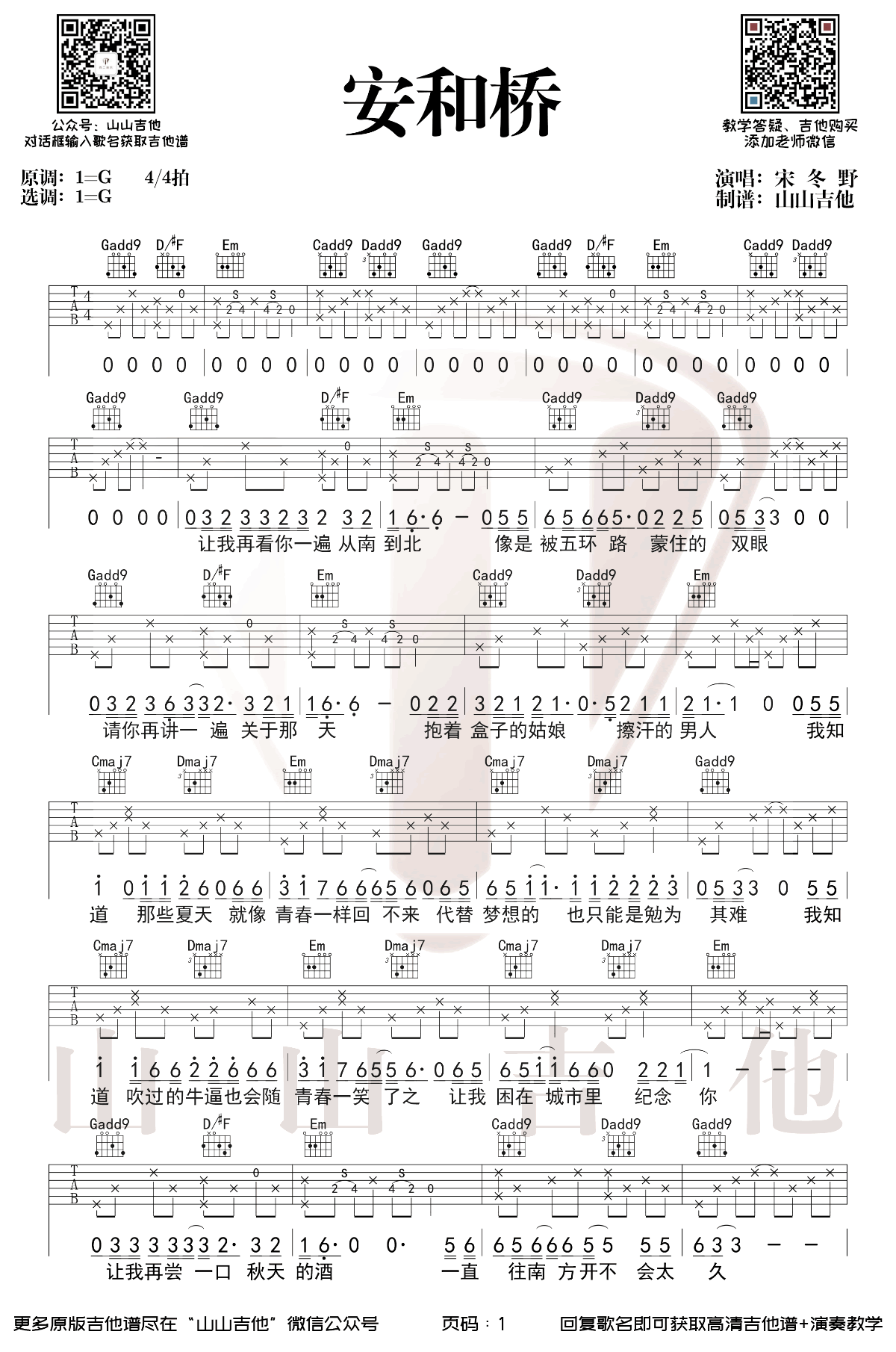曲谱介绍: 宋冬野《安和桥》吉他独奏谱,采用G调指法编配,共有2张高清图谱,免翻页排版设计。