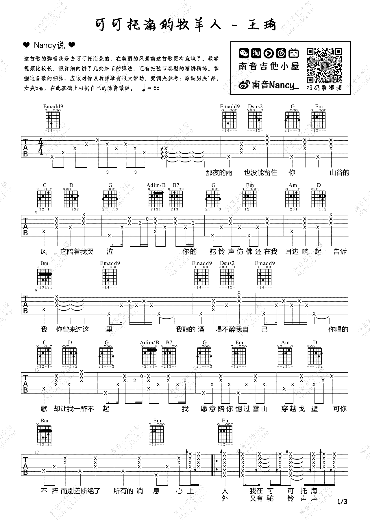 当前位置:琴谱网>吉他弹唱>可可托海的牧羊人