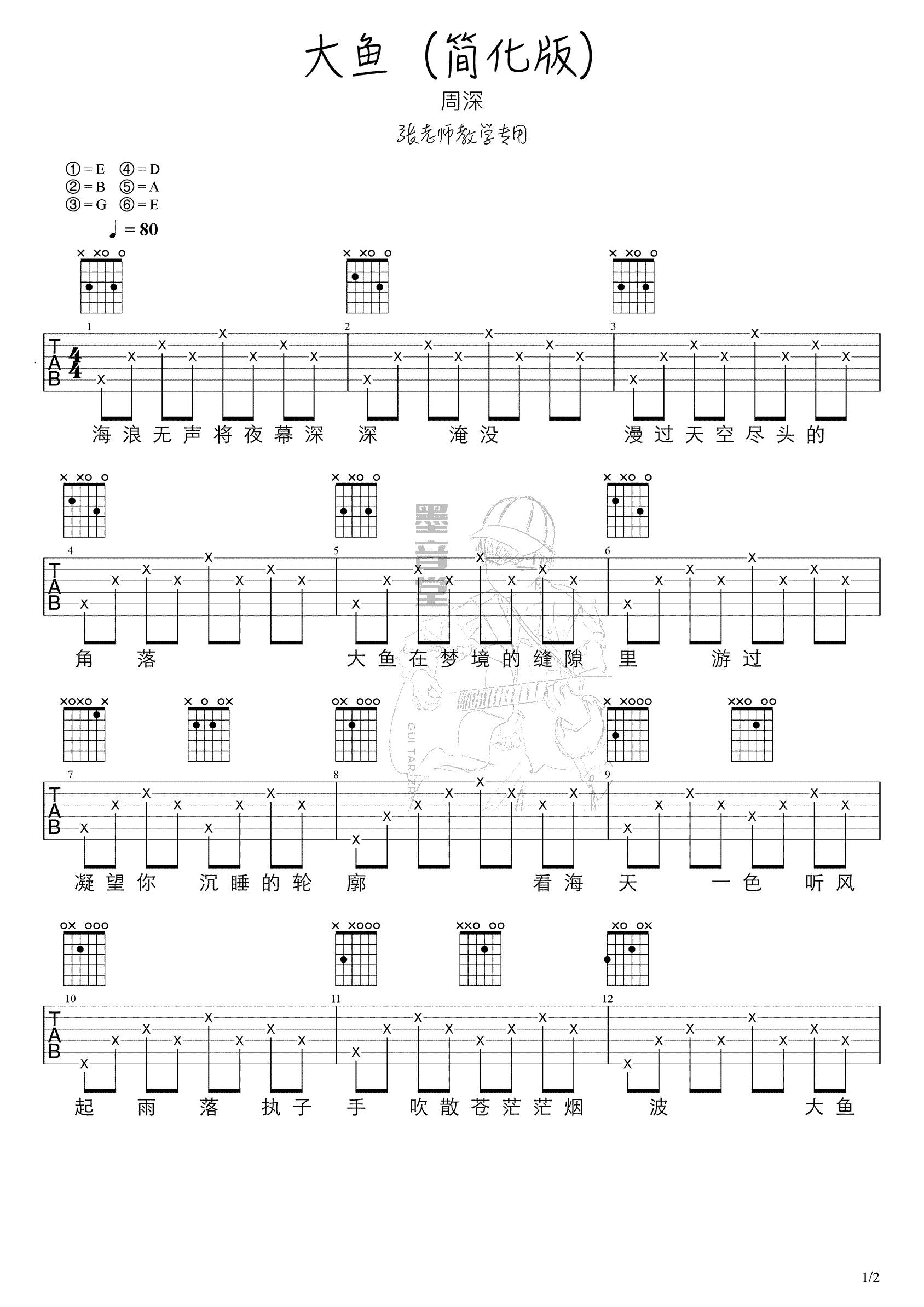 当前位置:琴谱网>吉他弹唱>大鱼