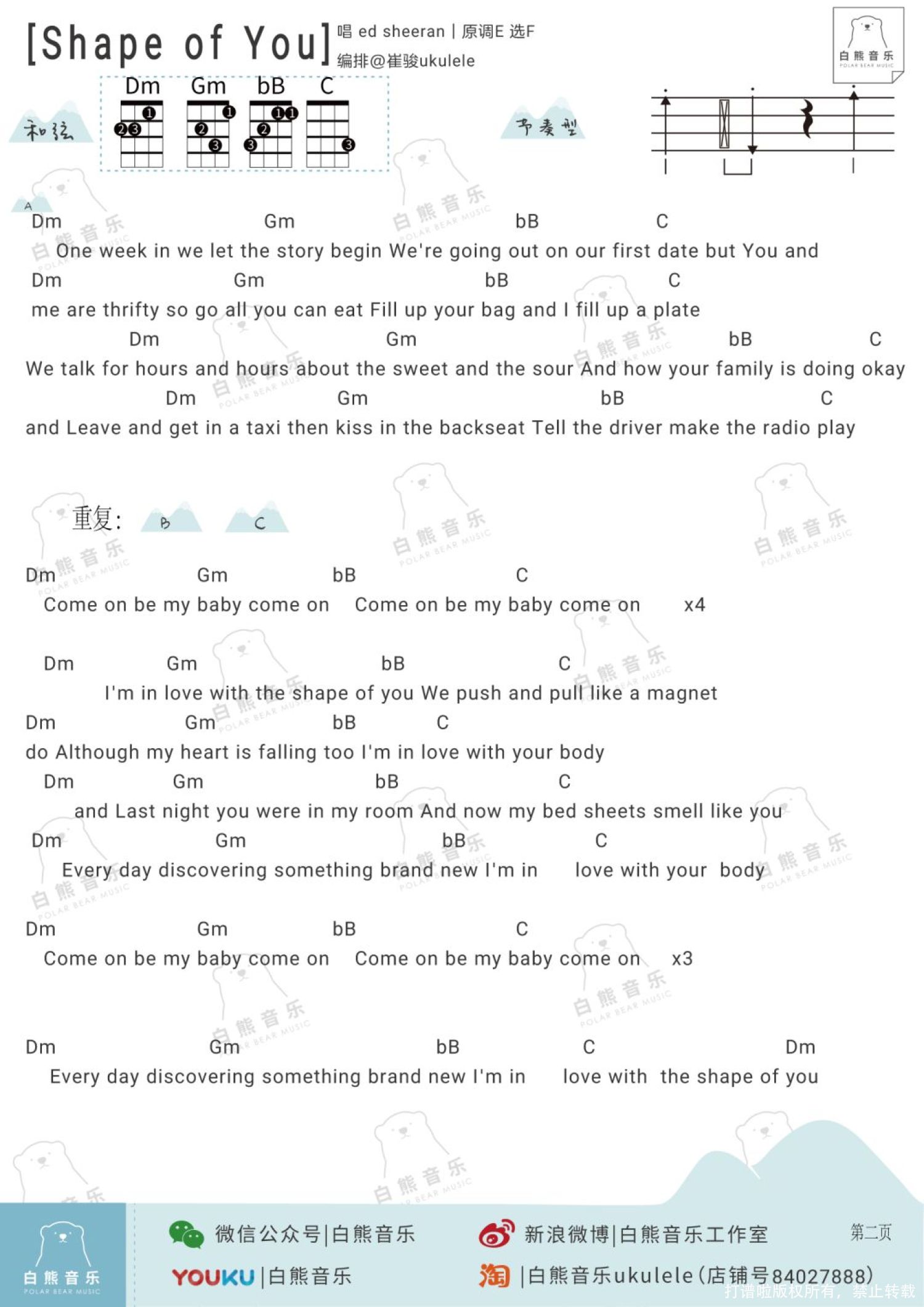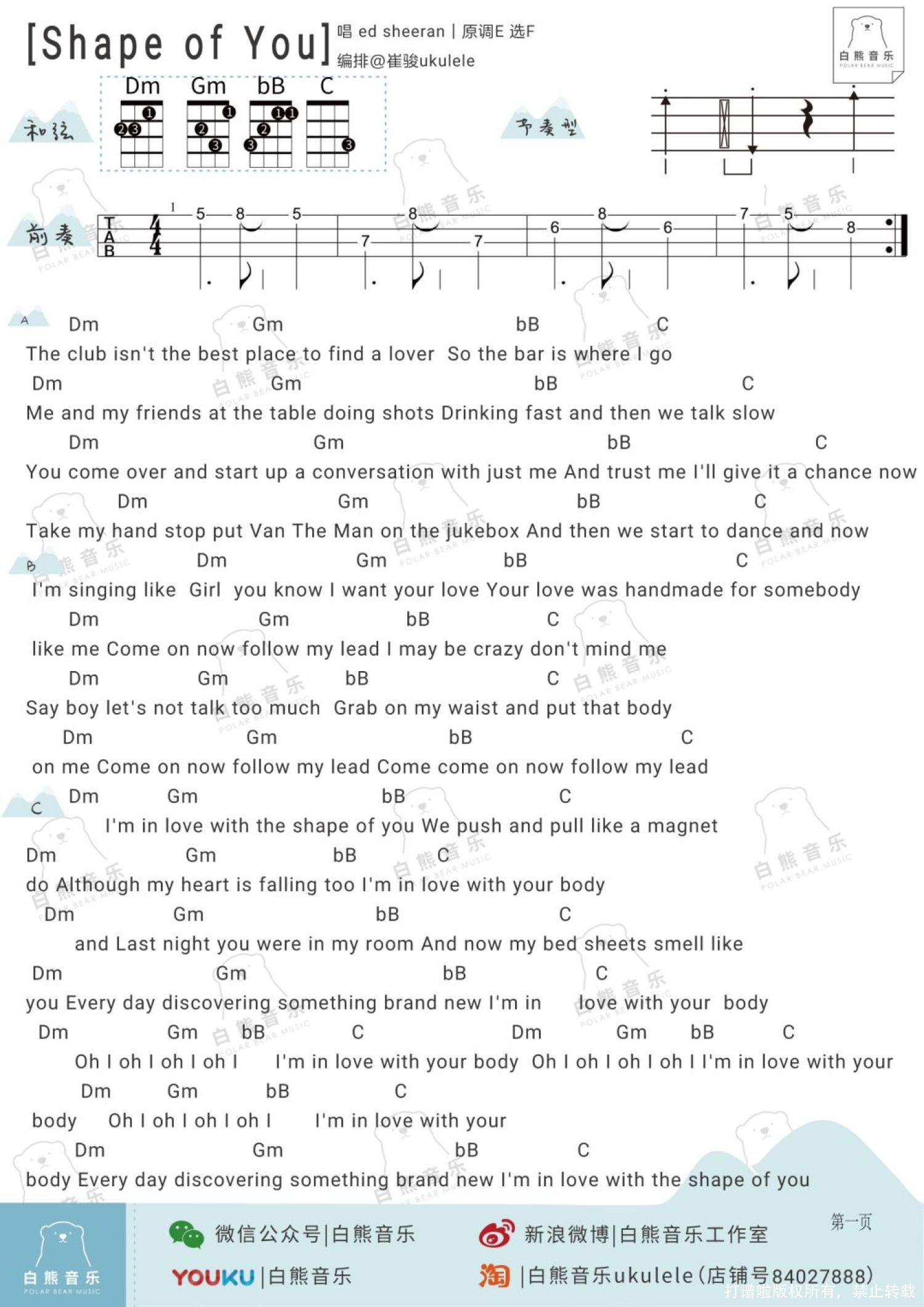 Shape Of You尤克里里谱 - 国外Ed Sheeran