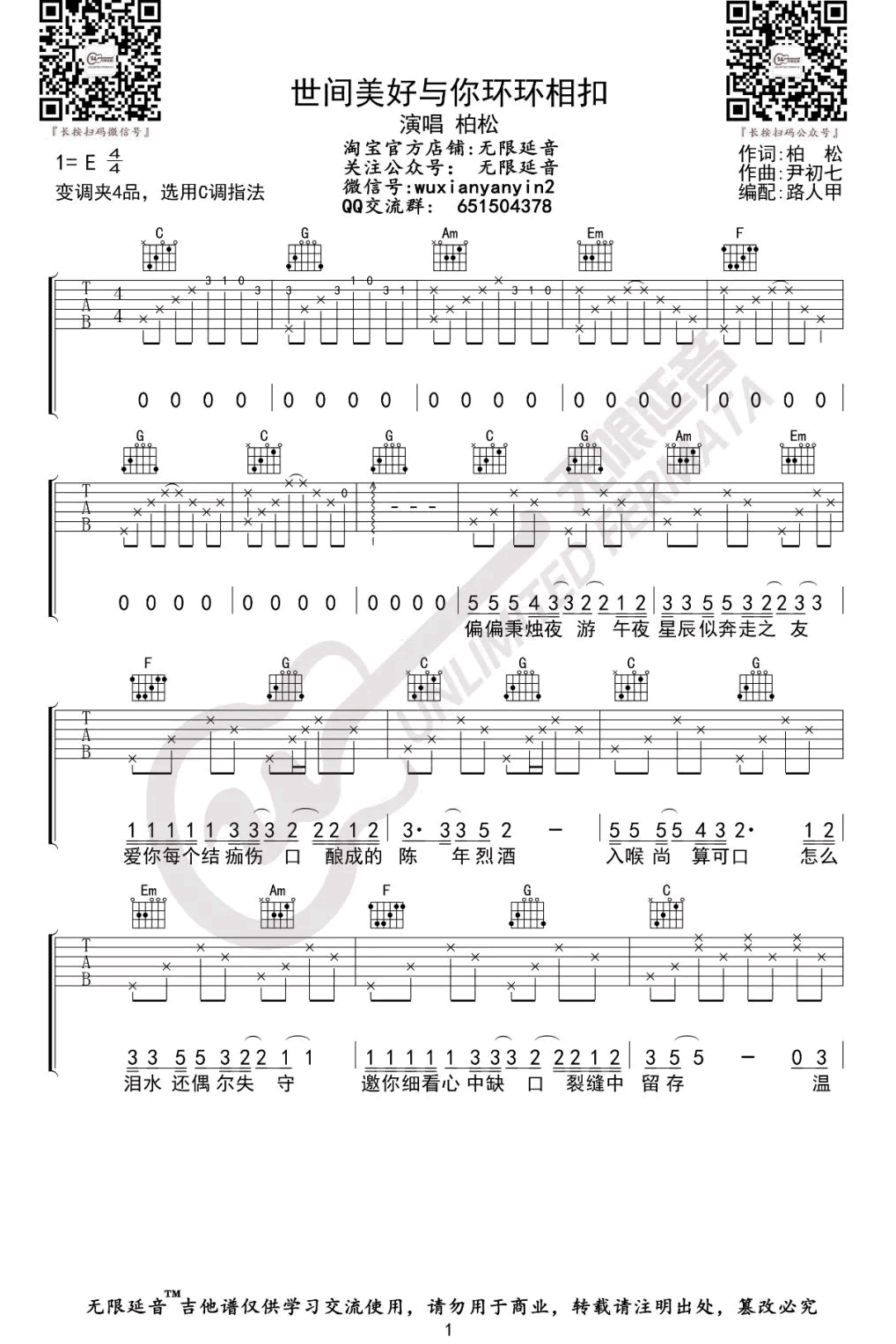 当前位置:琴谱网>吉他弹唱>世间美好与你环环相扣