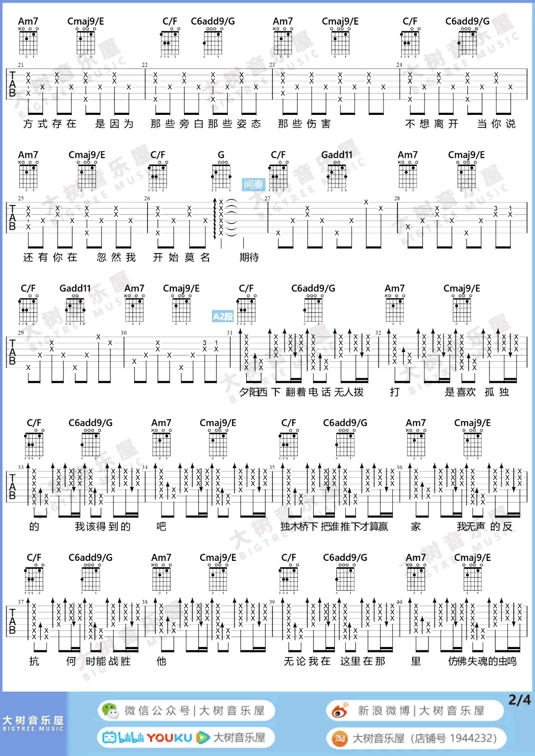吉他弹唱C调来源:良好市民131 浏览2024-01-25 23:07发布图谱共4页