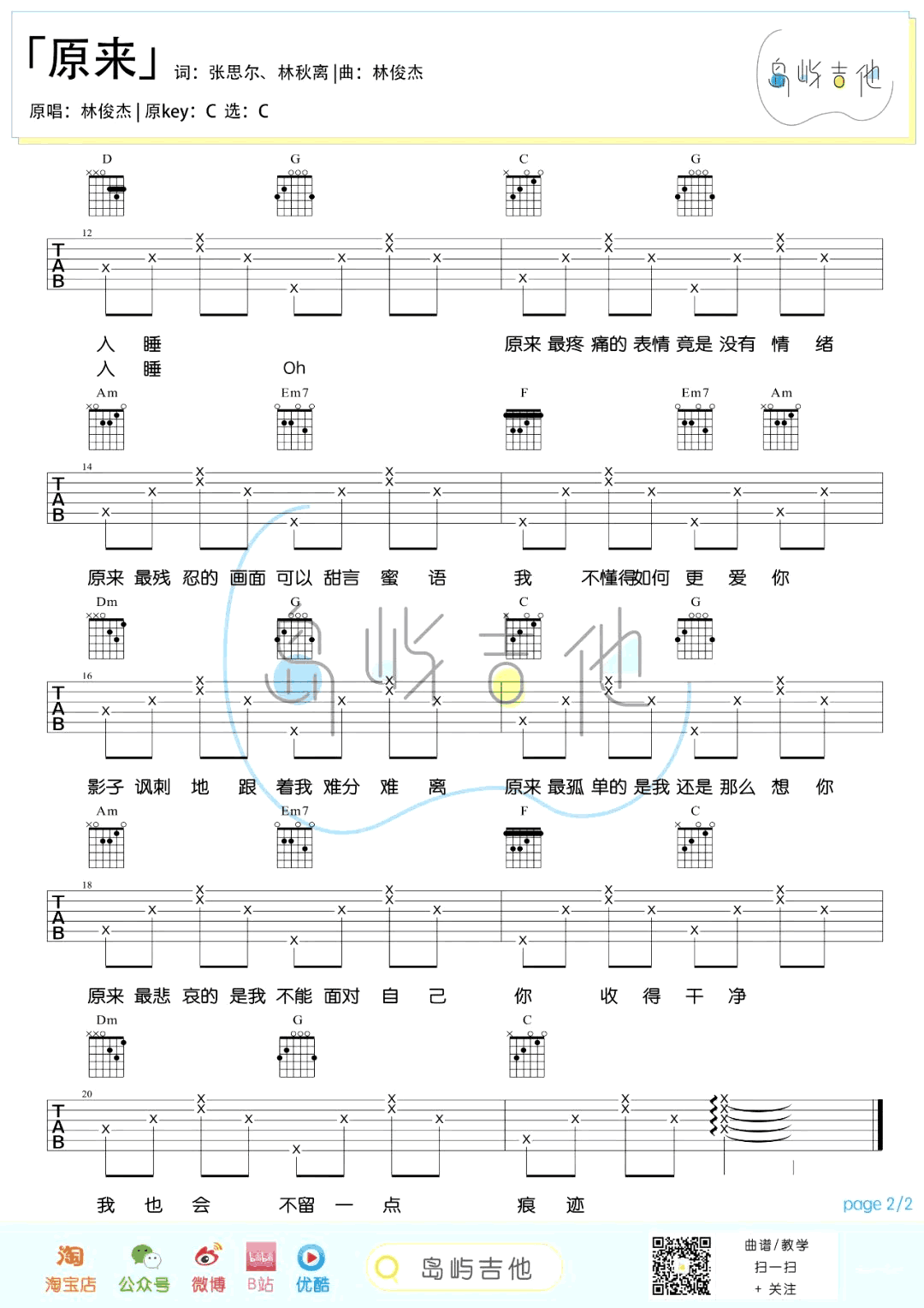 原来吉他谱 - 林俊杰 - C调吉他弹唱谱
