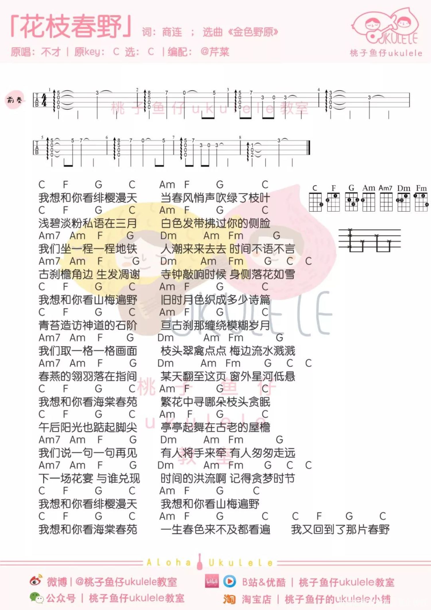 花枝春野尤克里里谱 - 不才