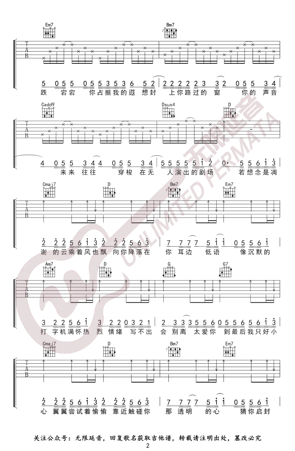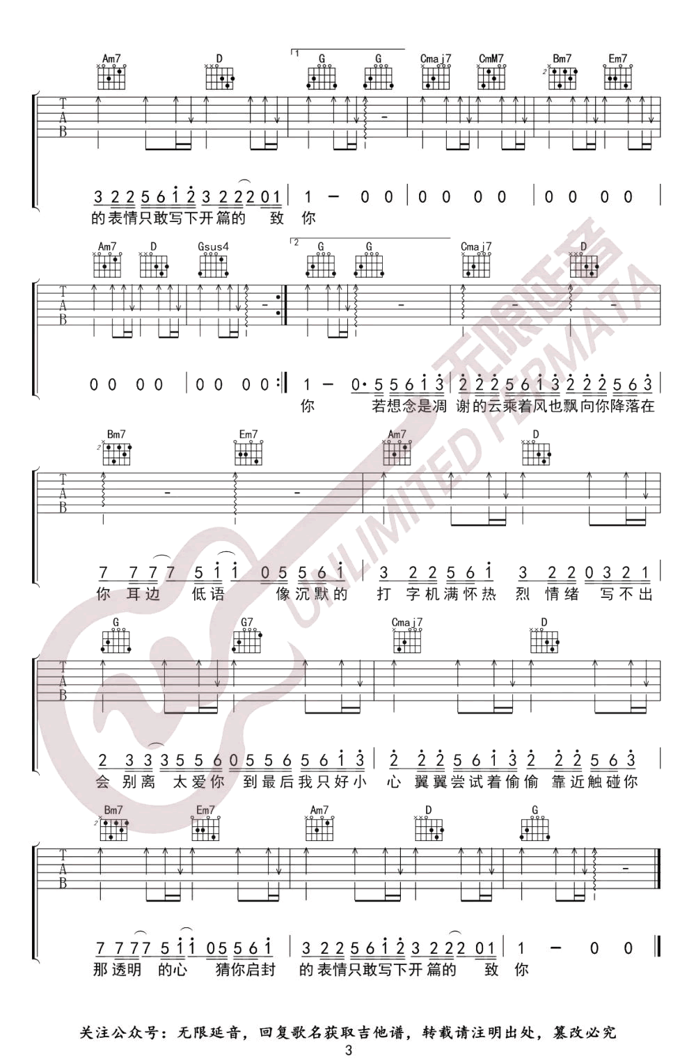 当前位置:琴谱网>吉他弹唱>致你