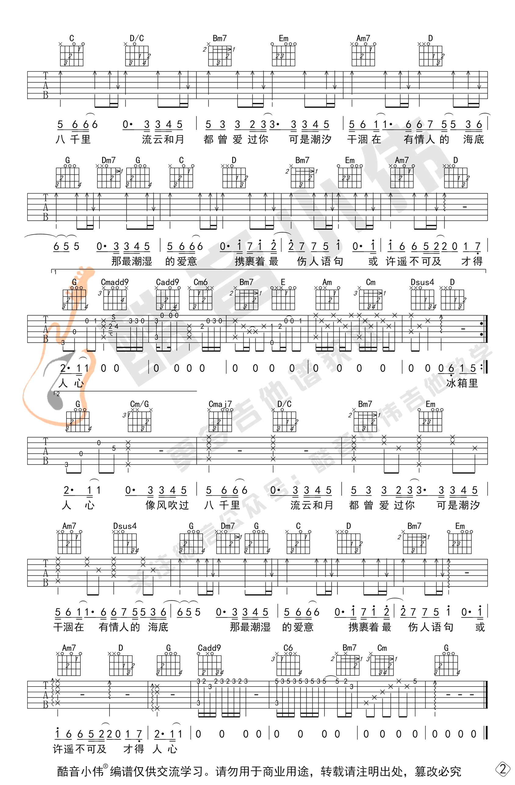 风吹过八千里吉他谱 - 苏星婕 - G调吉他弹唱谱