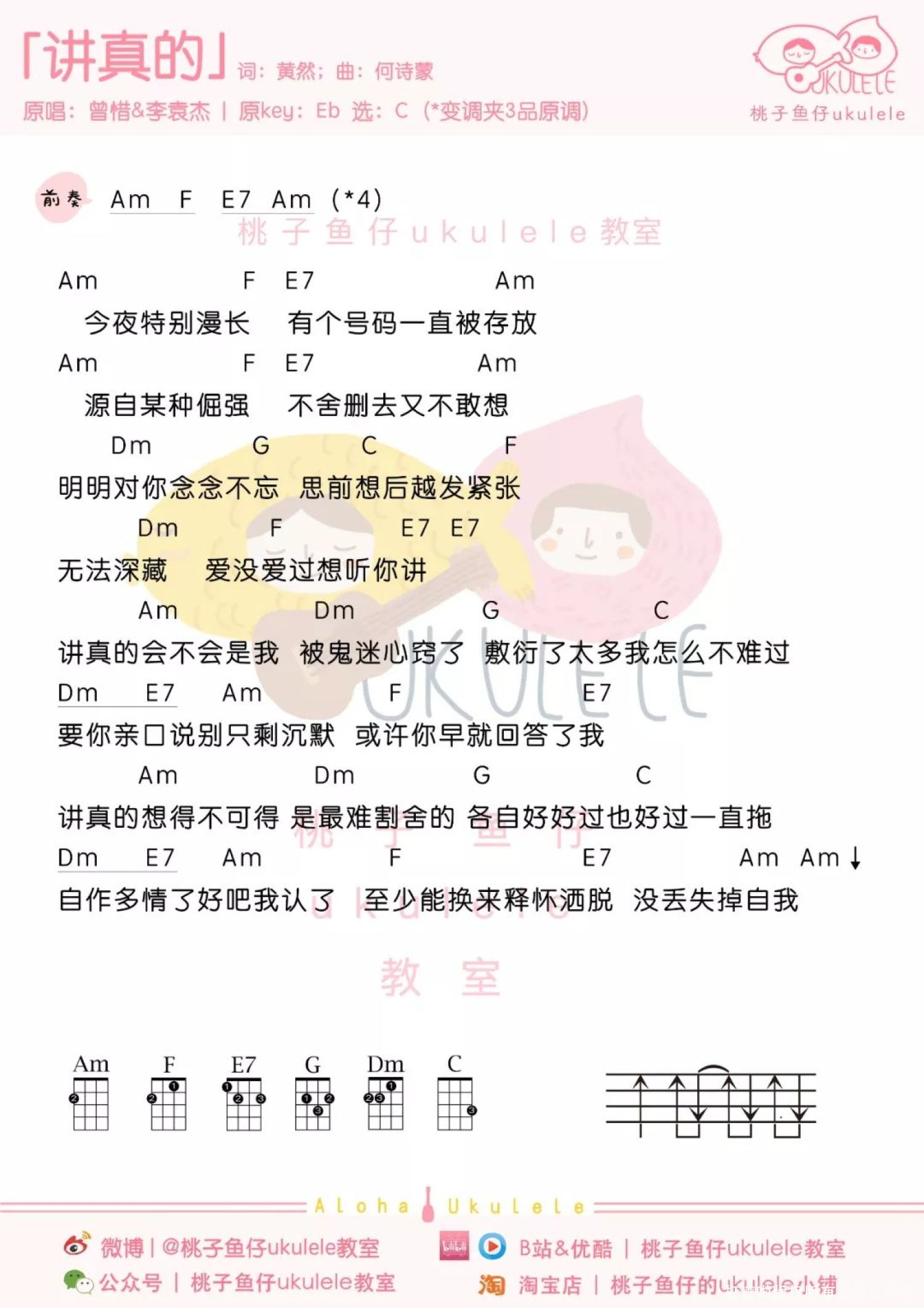 曲谱介绍:   弹唱教学   讲真的尤克里里谱