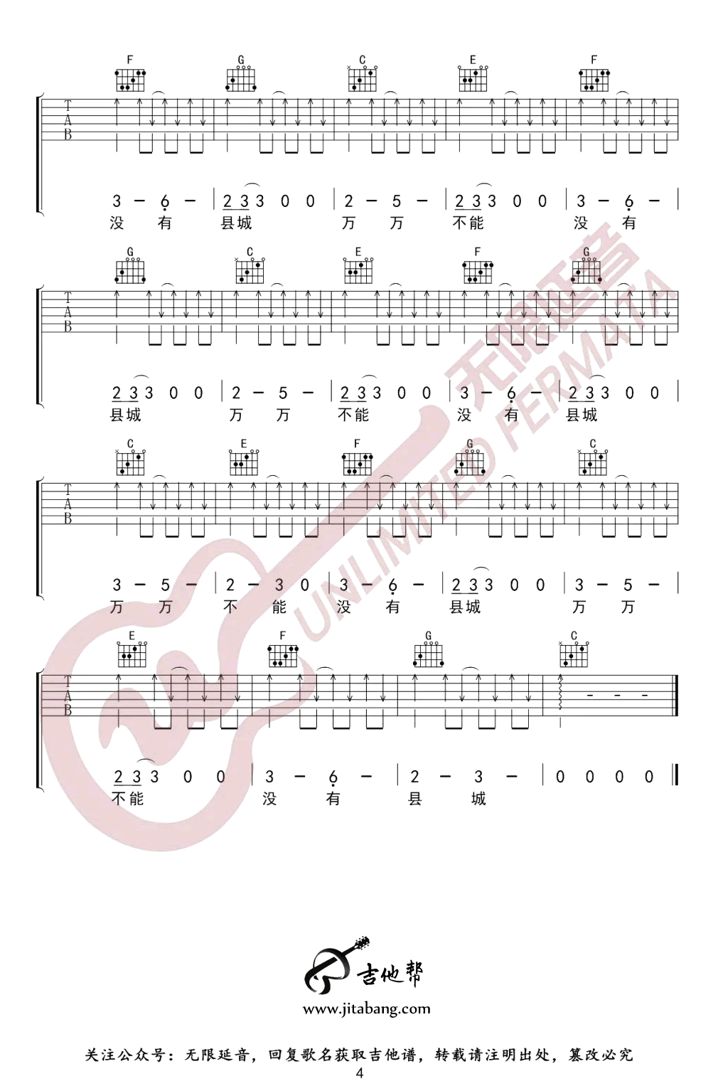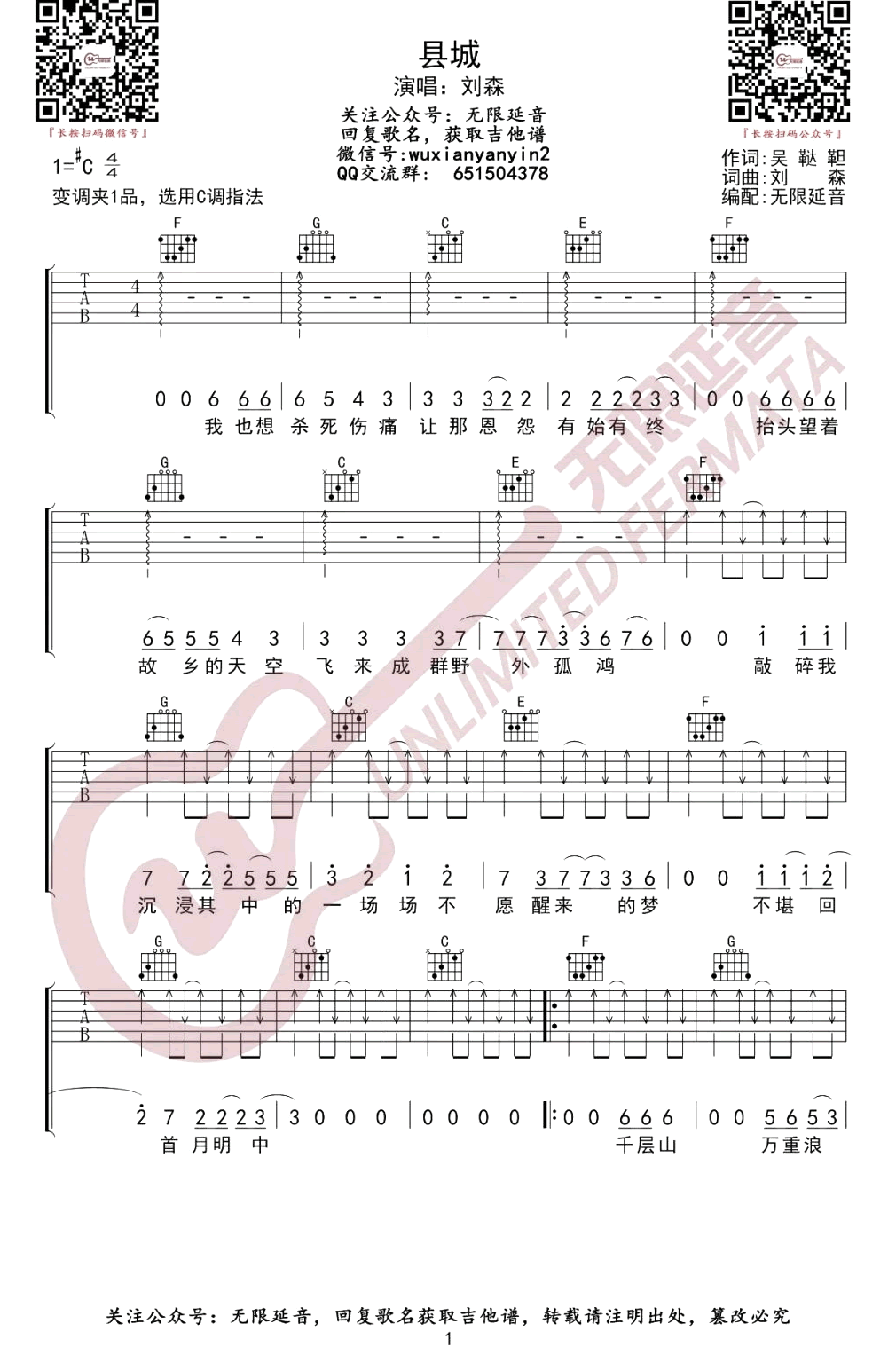 琴谱网为您精心推荐 县城 高清图谱