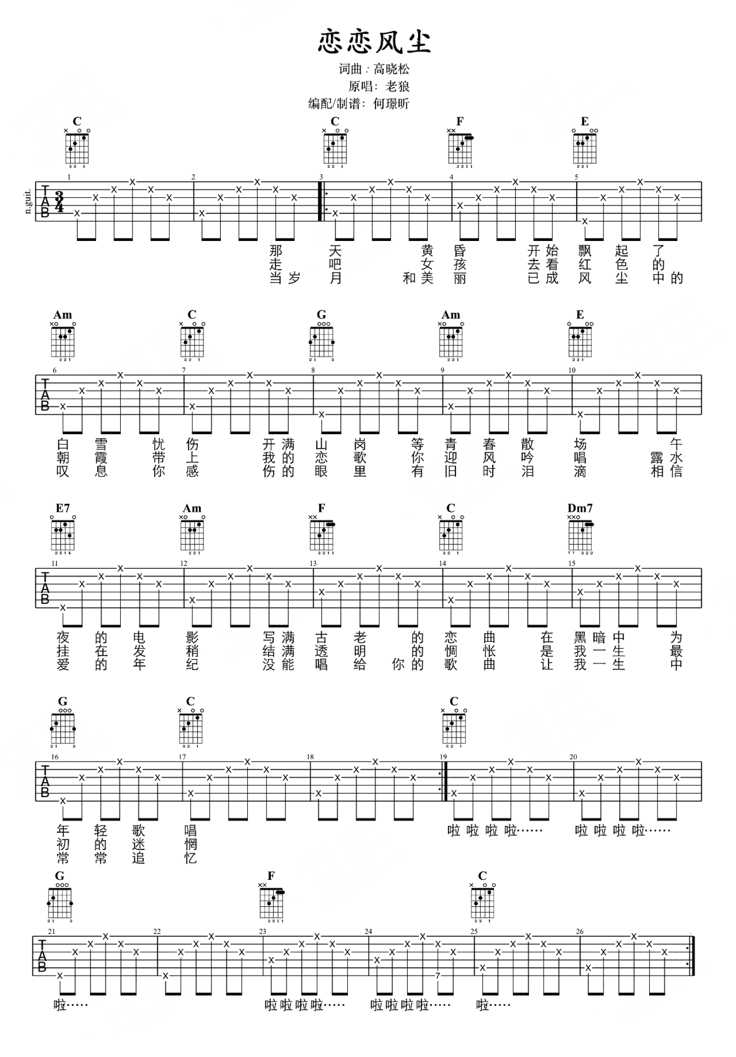 恋恋风尘吉他谱 - 老狼 - 吉他弹唱谱