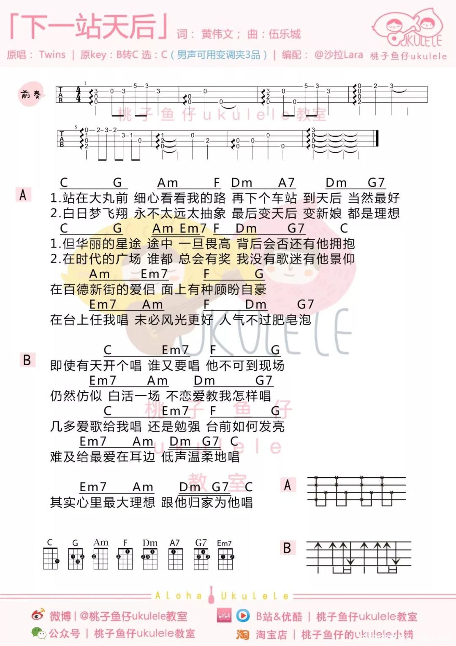 曲谱介绍: 1. 粤语版 — 《下一站天后》尤克里里谱    2. 国语版 — 《莫斯科没有眼泪》