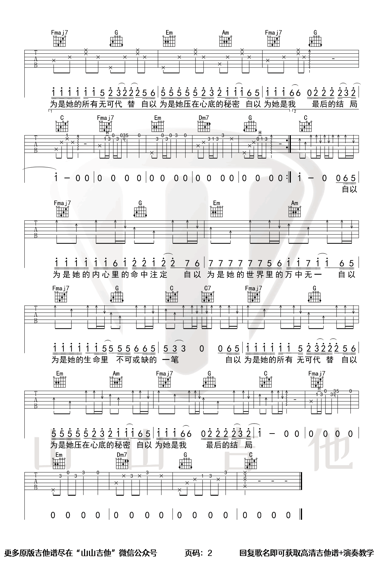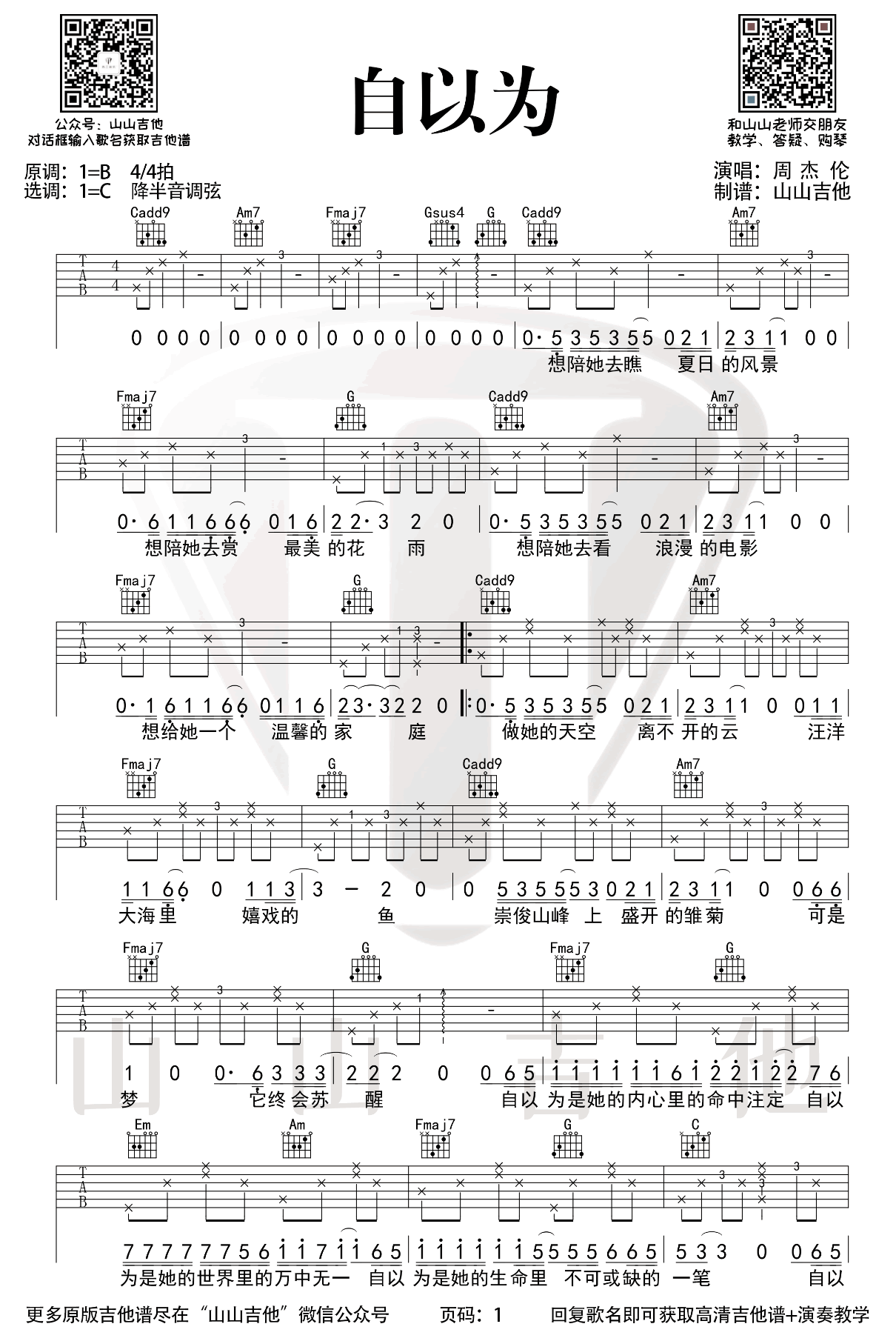 曲谱介绍: 自以为吉他谱,刘大壮演唱,原调B选调C,降半音调弦。如果女生弹唱建议变调夹夹第二品。