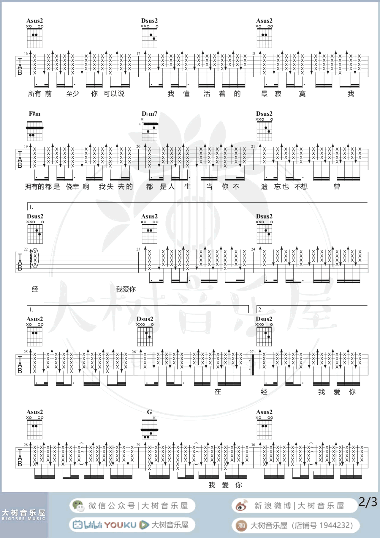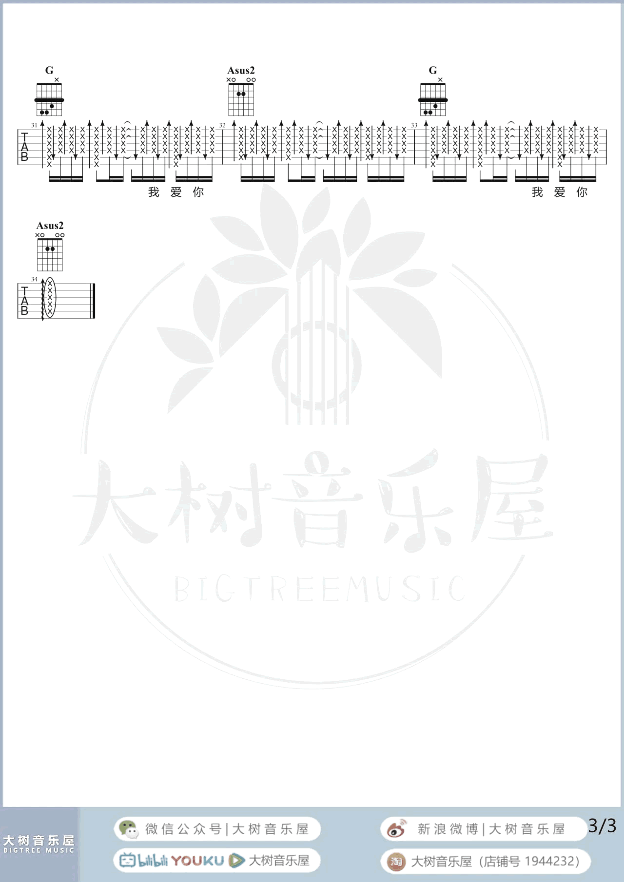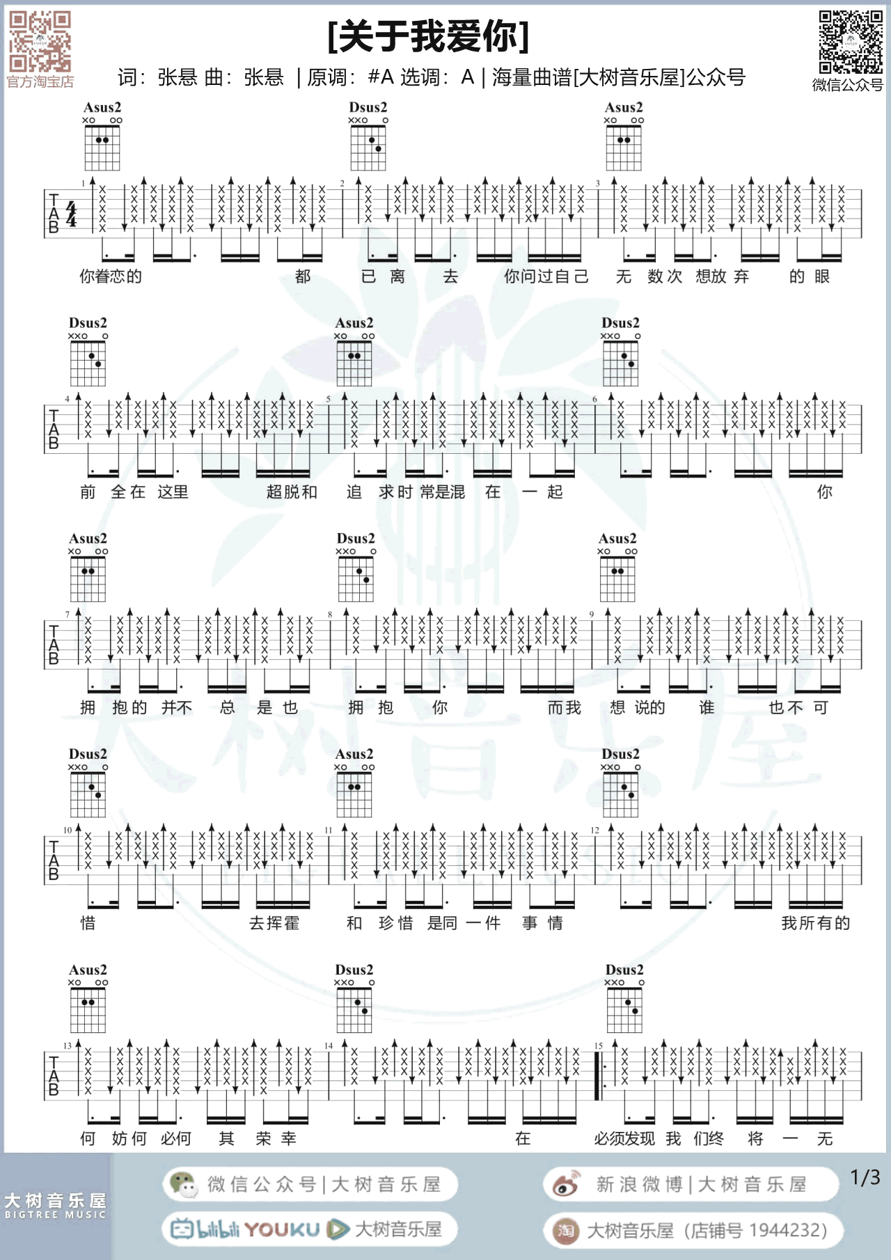关于我爱你吉他谱 - 张悬/沈以诚 - 吉他弹唱谱