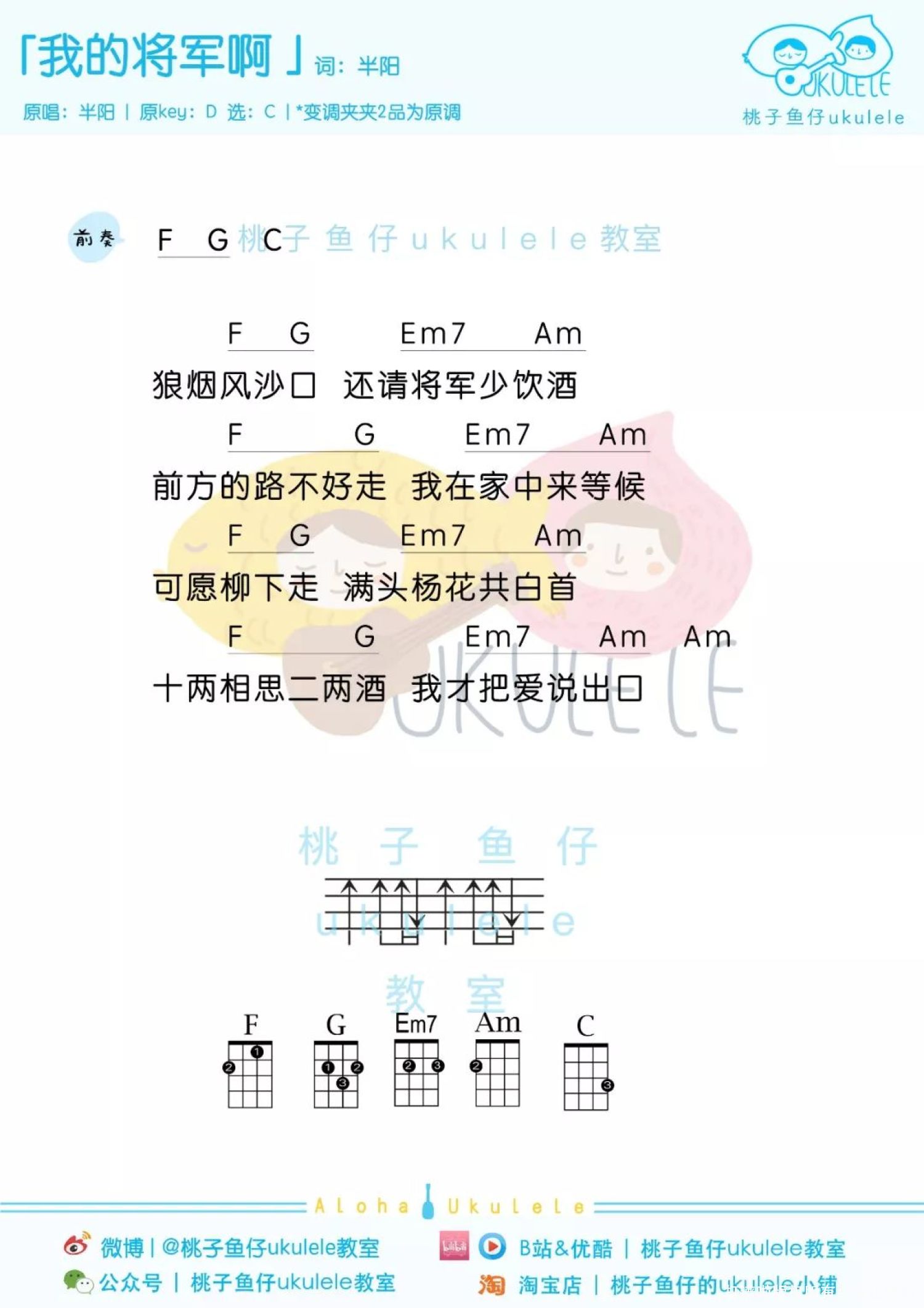 曲谱介绍: 《我的将军啊》尤克里里弹唱谱