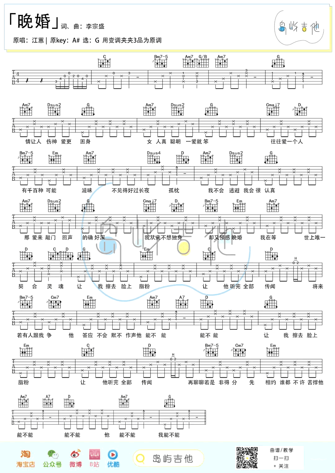 当前位置:琴谱网>吉他弹唱>晚婚