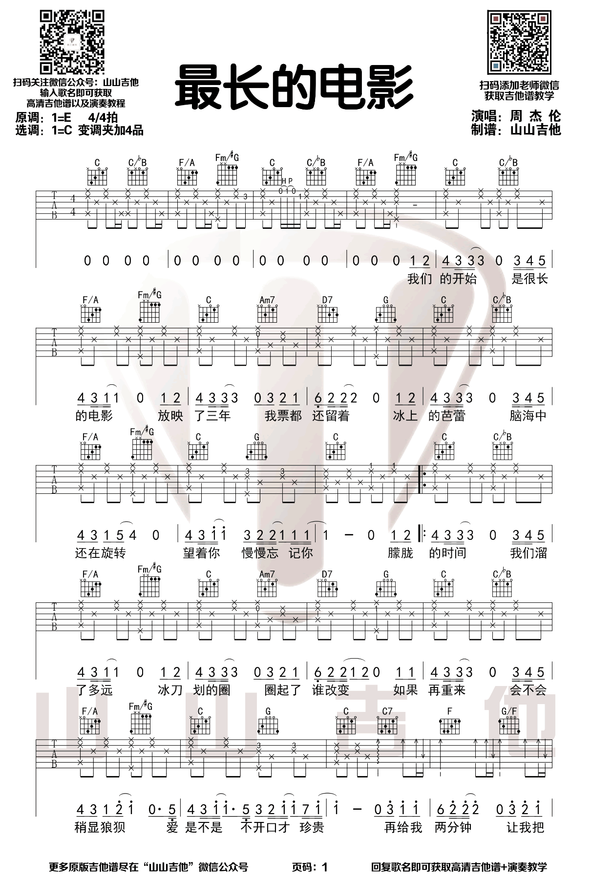 最长的电影吉他谱 - 周杰伦 - C调吉他弹唱谱 - 原版