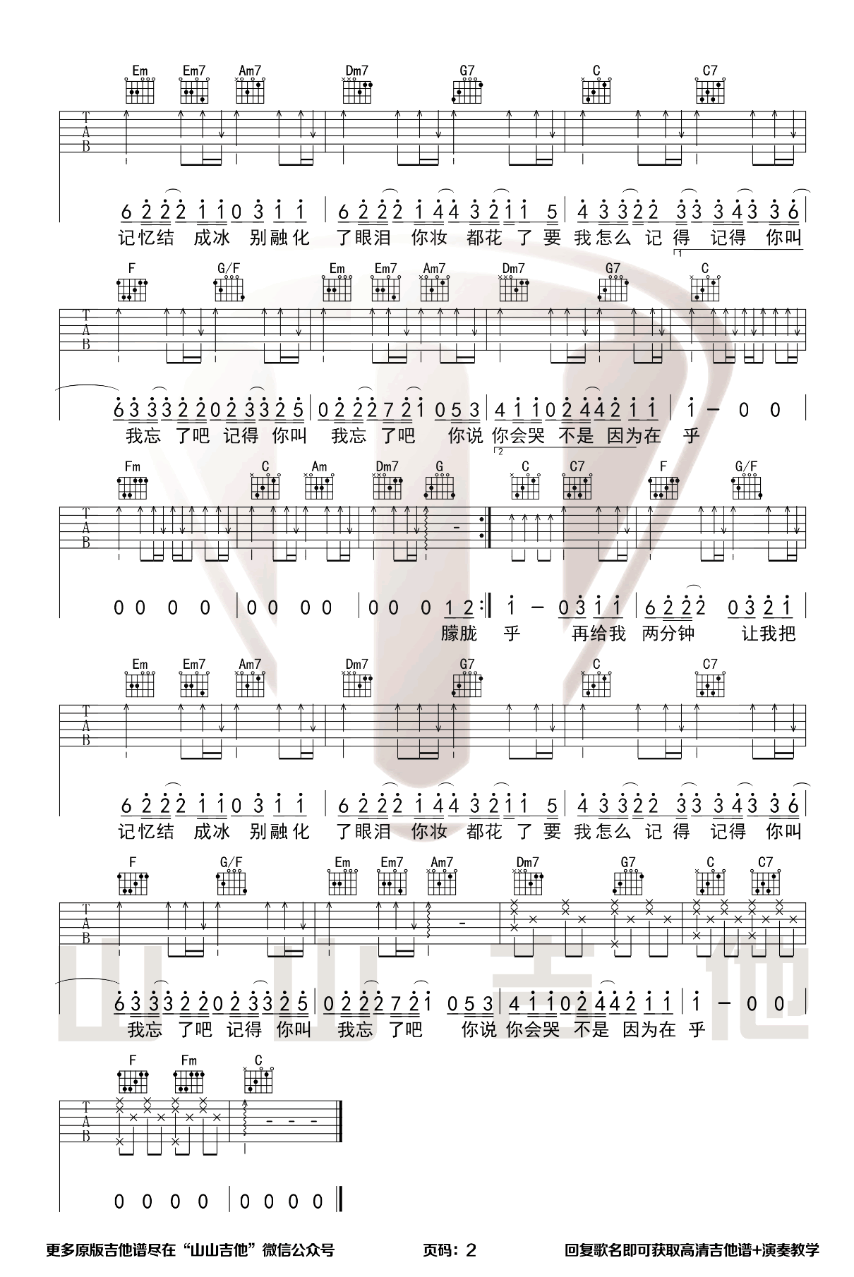 曲谱介绍: 周杰伦的一首经典伤感情歌,最长的电影吉他谱,原调E选调C,变调夹加建议二到四品,两张图片六线谱。
