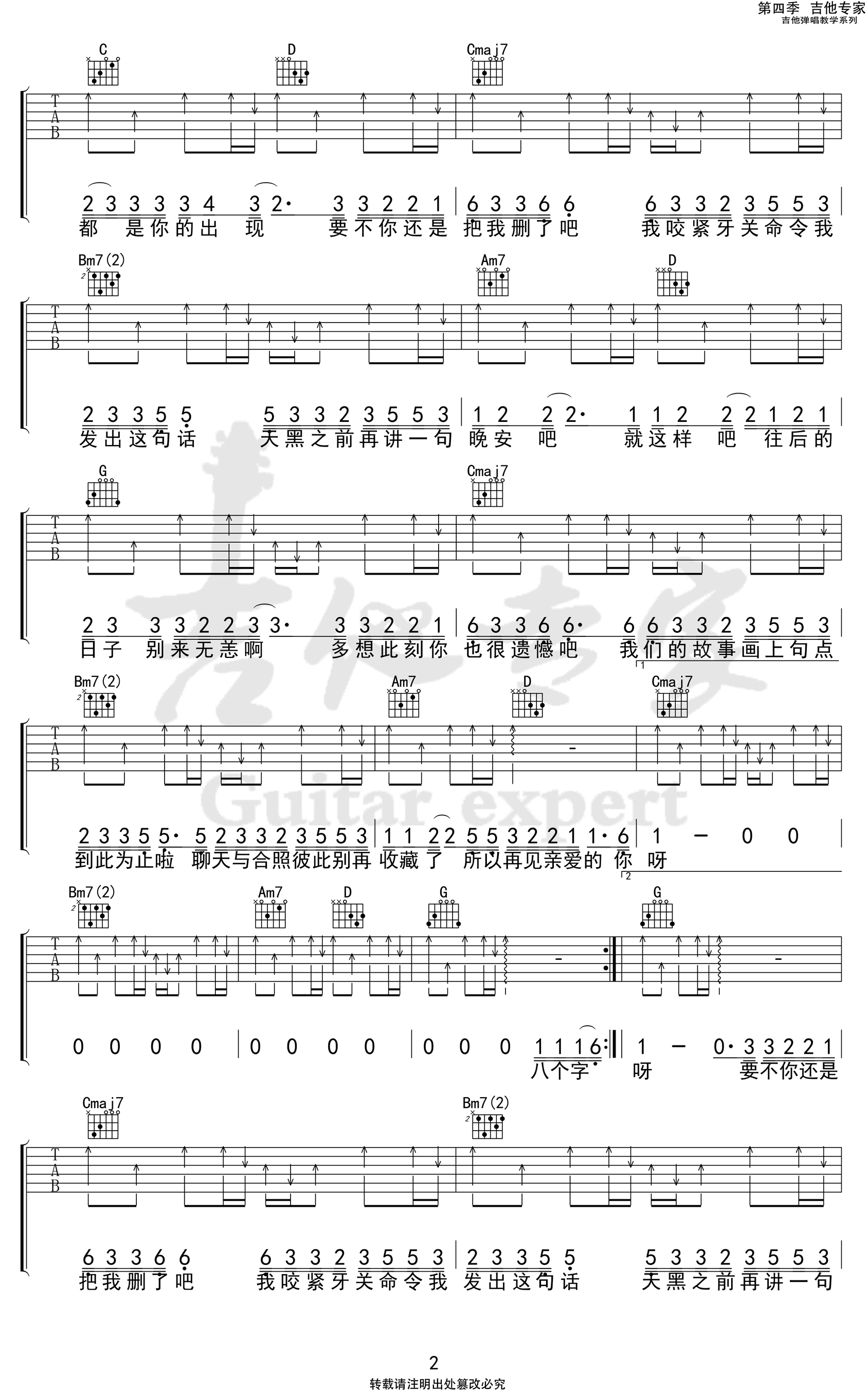 当前位置:琴谱网>吉他弹唱>删了吧