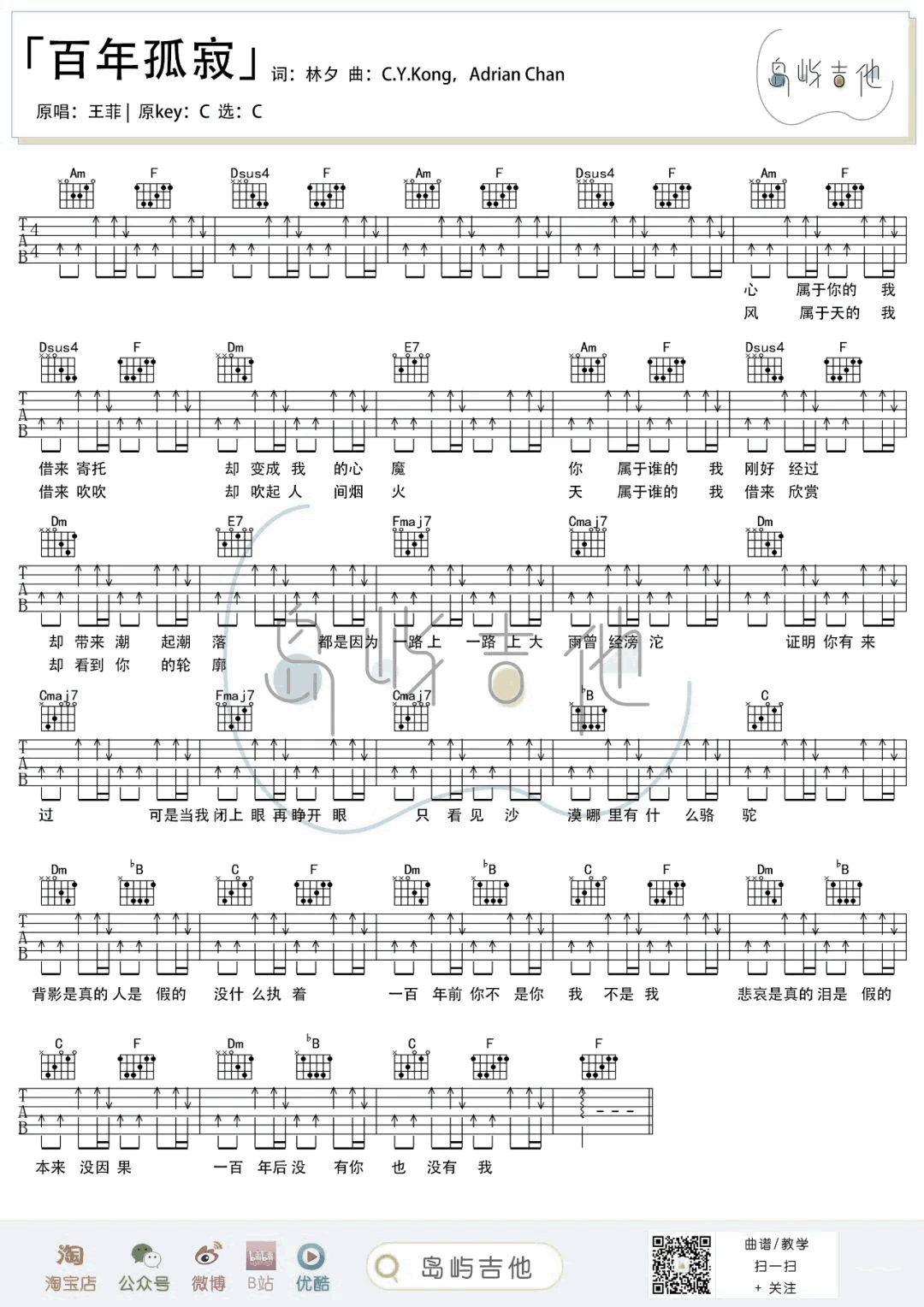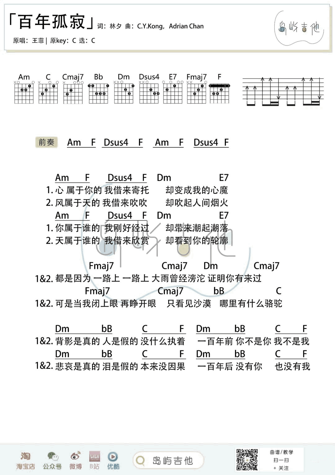 百年孤寂吉他谱 - 王菲 - C调吉他弹唱谱