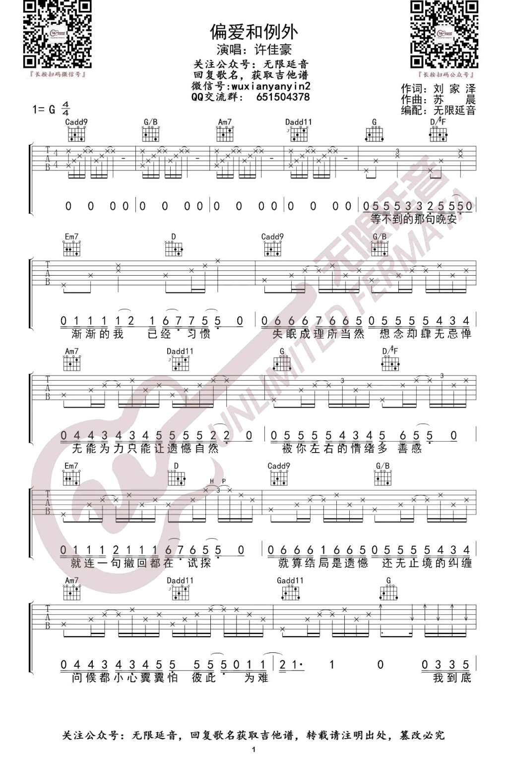 曲谱介绍: 许佳豪的一首网络热门歌曲,偏爱和例外吉他谱,选用了G调和弦指法,两张弹唱图片谱。《偏爱和例外》吉他六线谱,吉他帮整理更新。