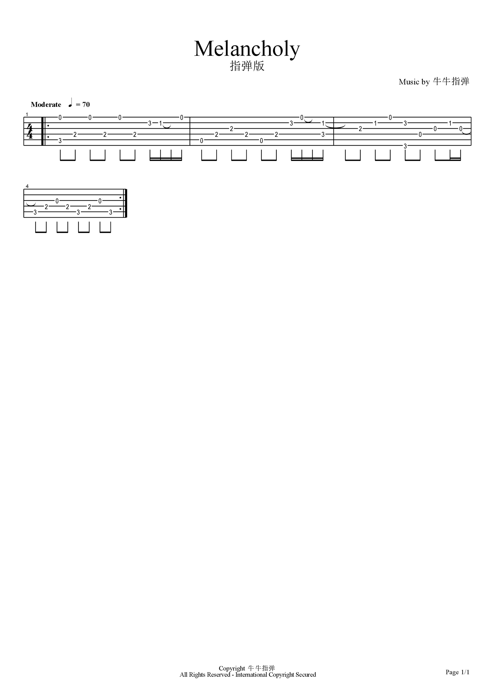 Melancholy吉他谱 - 抖音热门BGM - 吉他独奏谱 - 原版