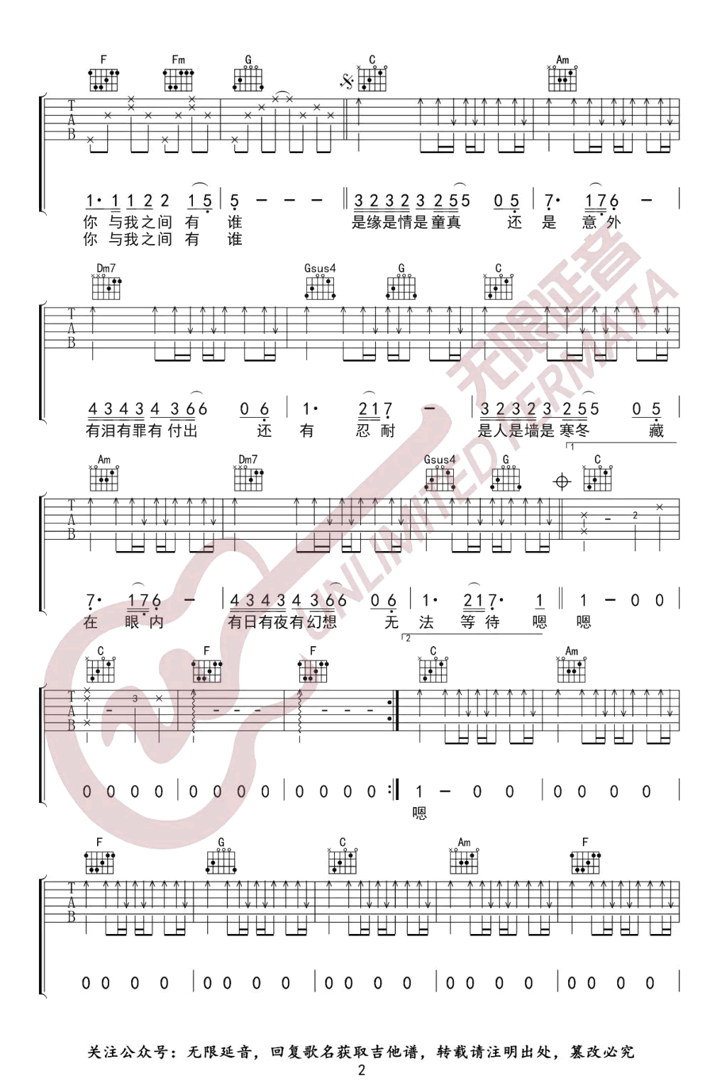 曲谱介绍: Beyond《情人》吉他弹唱谱,采用C调指法编配,共有3张高清图谱。