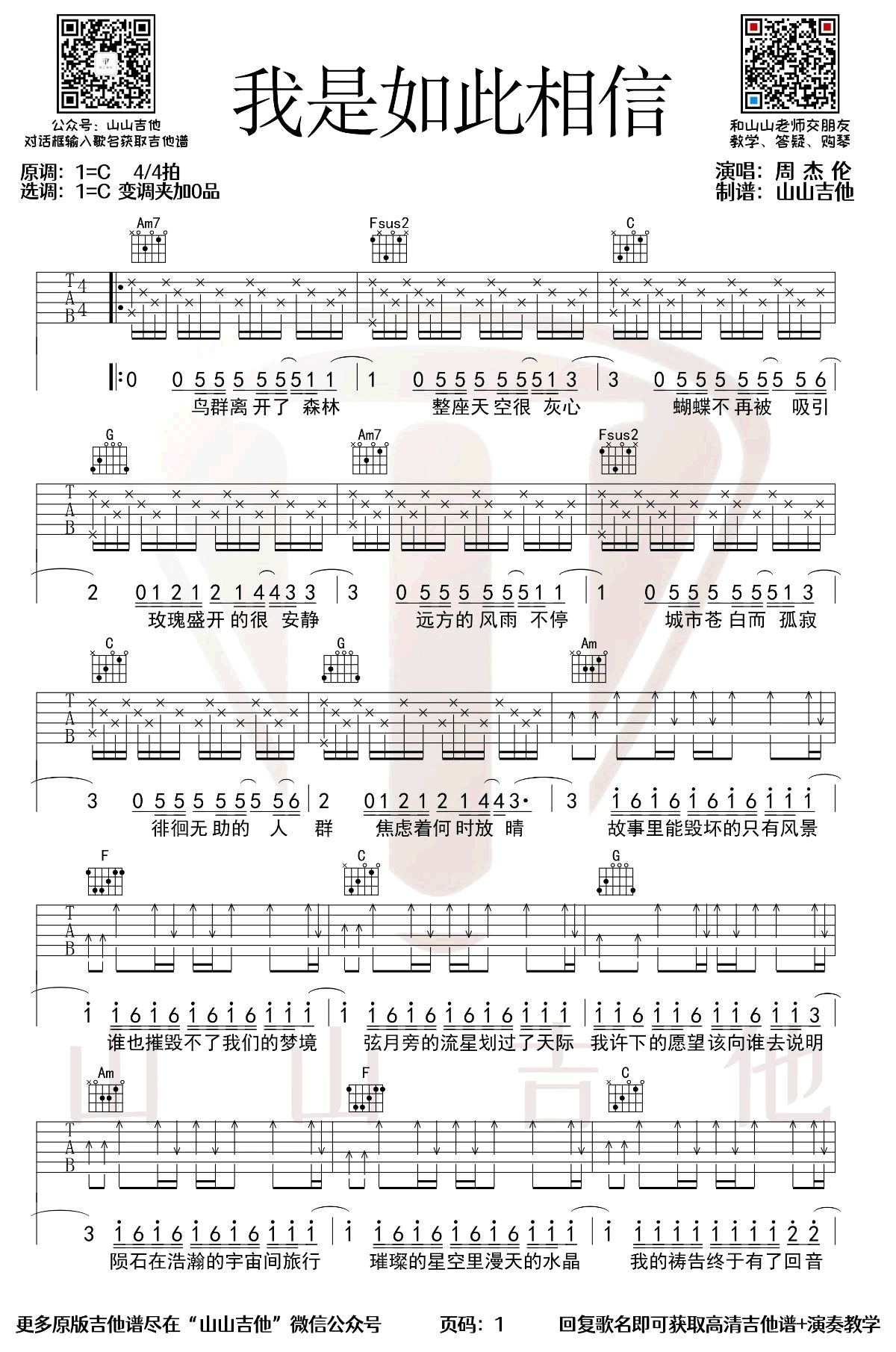 我是如此相信吉他谱 - 周杰伦 - C调吉他弹唱谱 - 原版