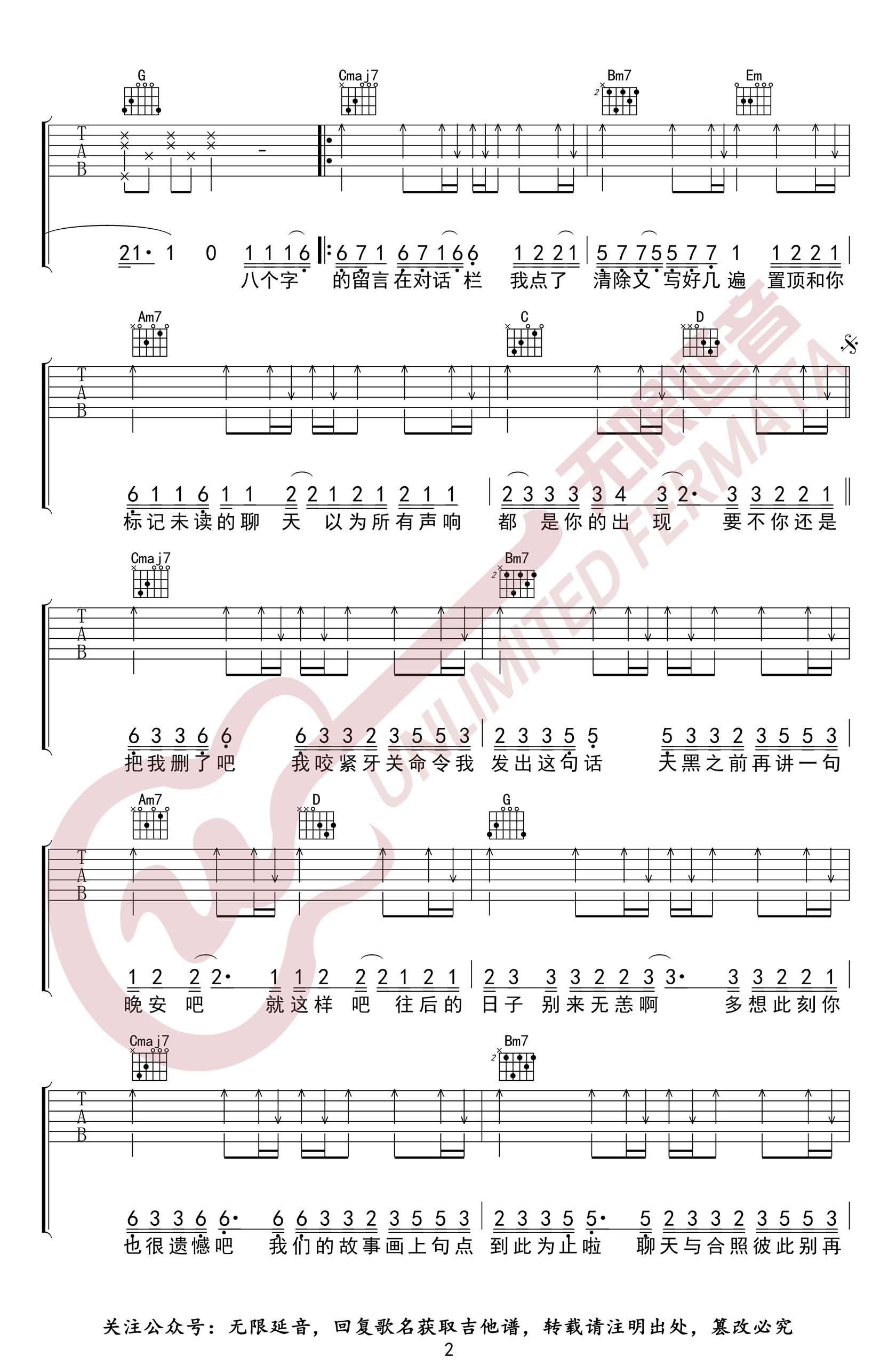 删了吧吉他谱 - 烟(许佳豪) - G调吉他弹唱谱