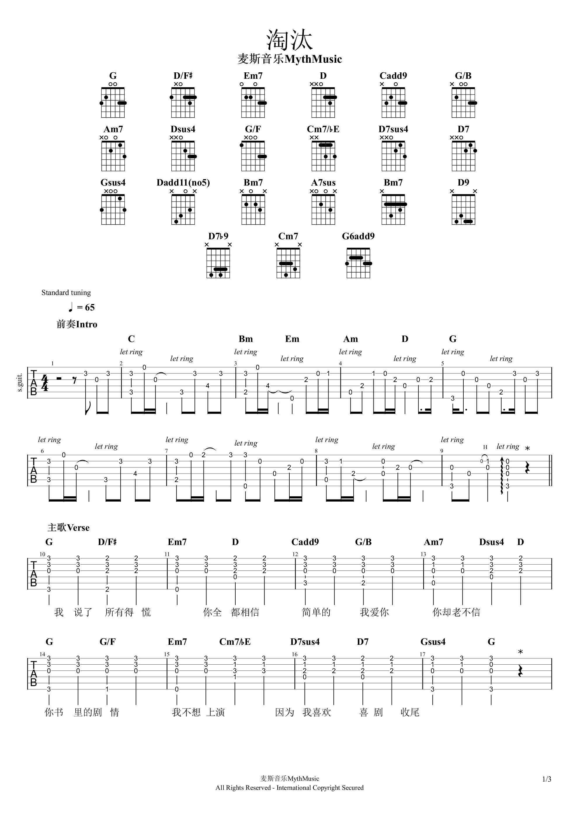 当前位置:琴谱网>吉他弹唱>淘汰