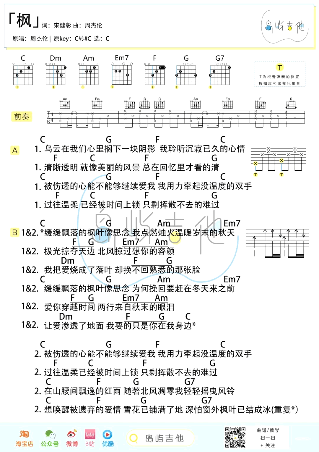 当前位置:琴谱网>吉他弹唱>枫