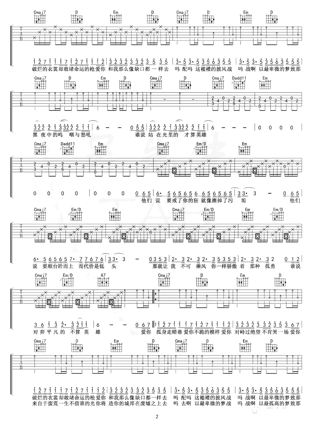 当前位置:琴谱网>吉他弹唱>孤勇者