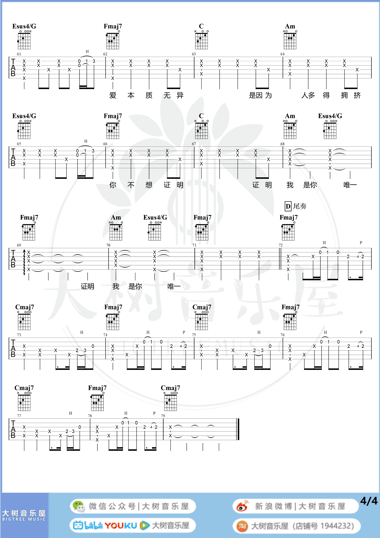 当前位置:琴谱网>吉他弹唱>唯一