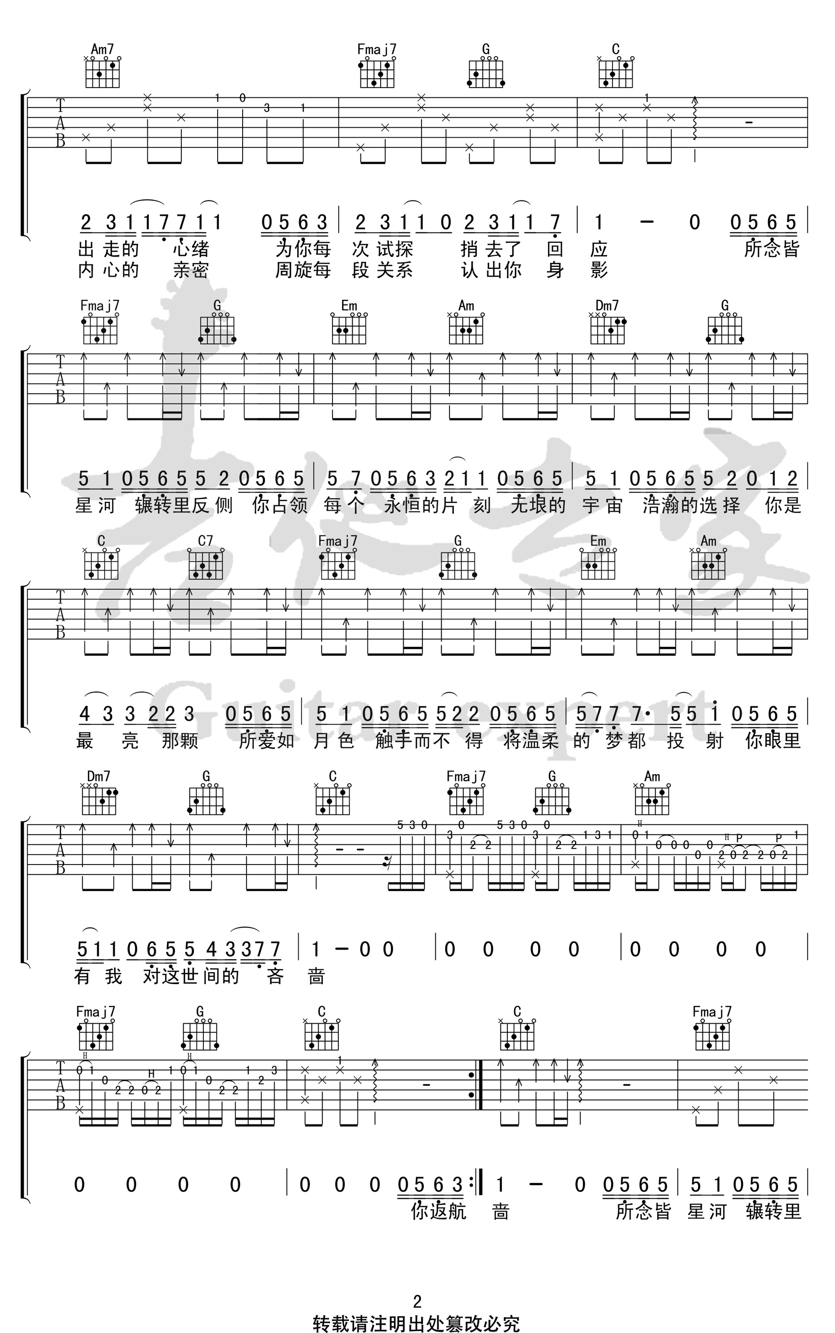 所念皆星河吉他谱 - 房东的猫 - C调吉他弹唱谱 - 原版