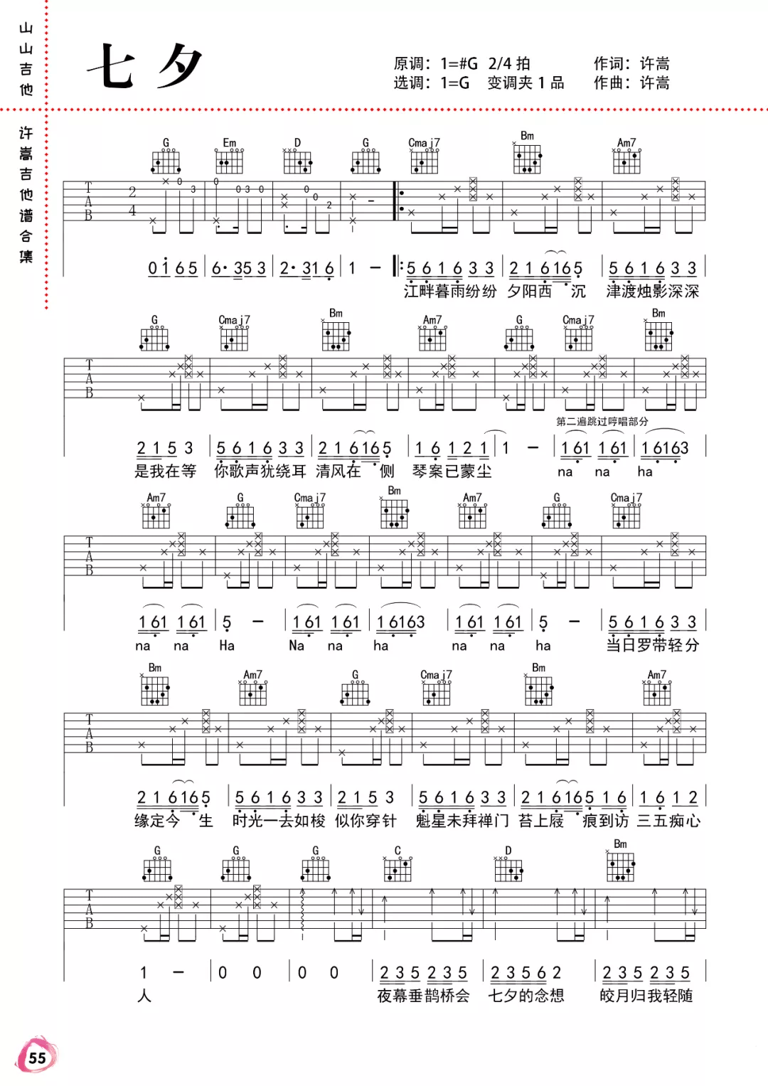 七夕吉他谱 - 许嵩 - G调吉他弹唱谱 - 原版