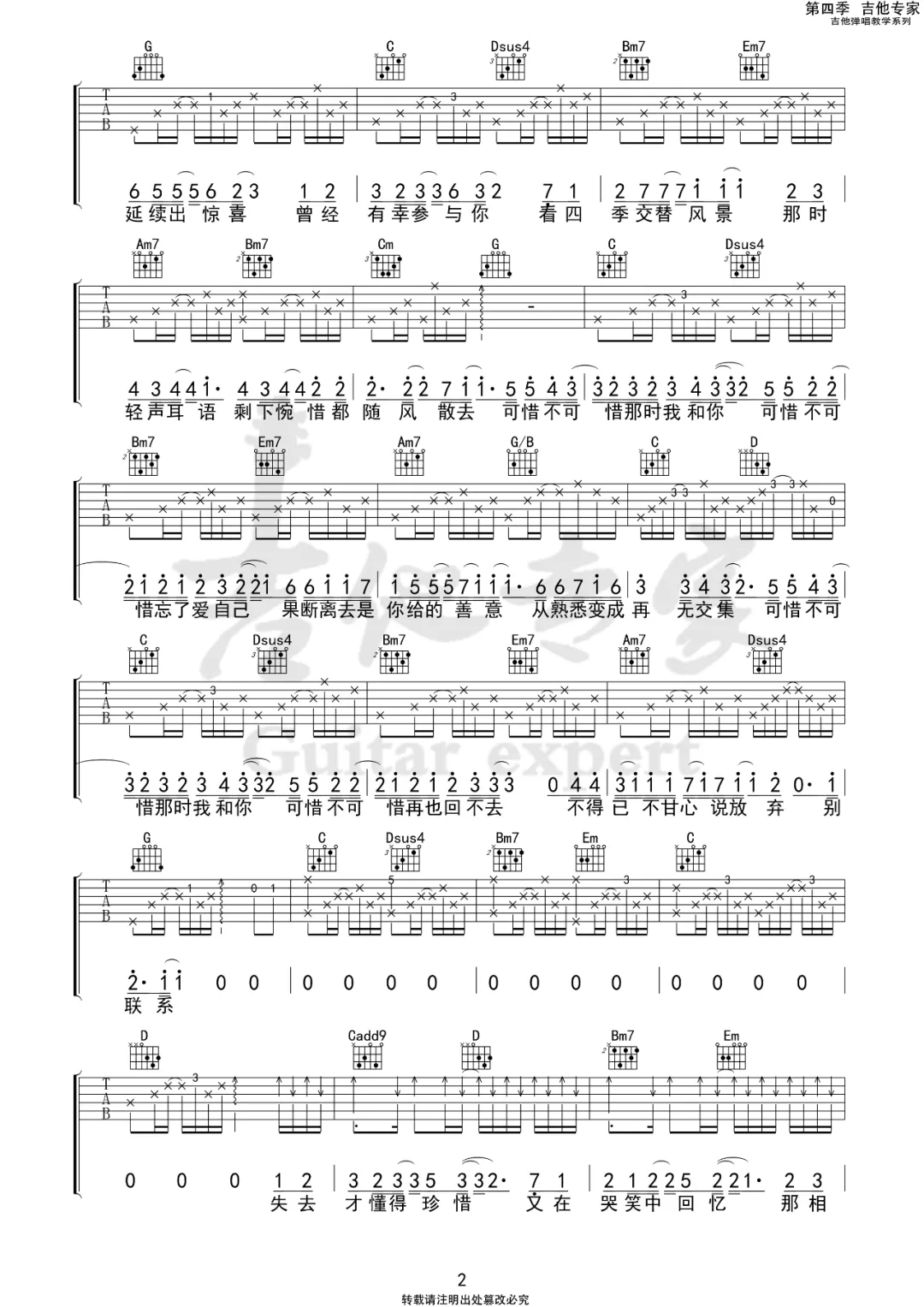 当前位置:琴谱网>吉他弹唱>可惜不可惜
