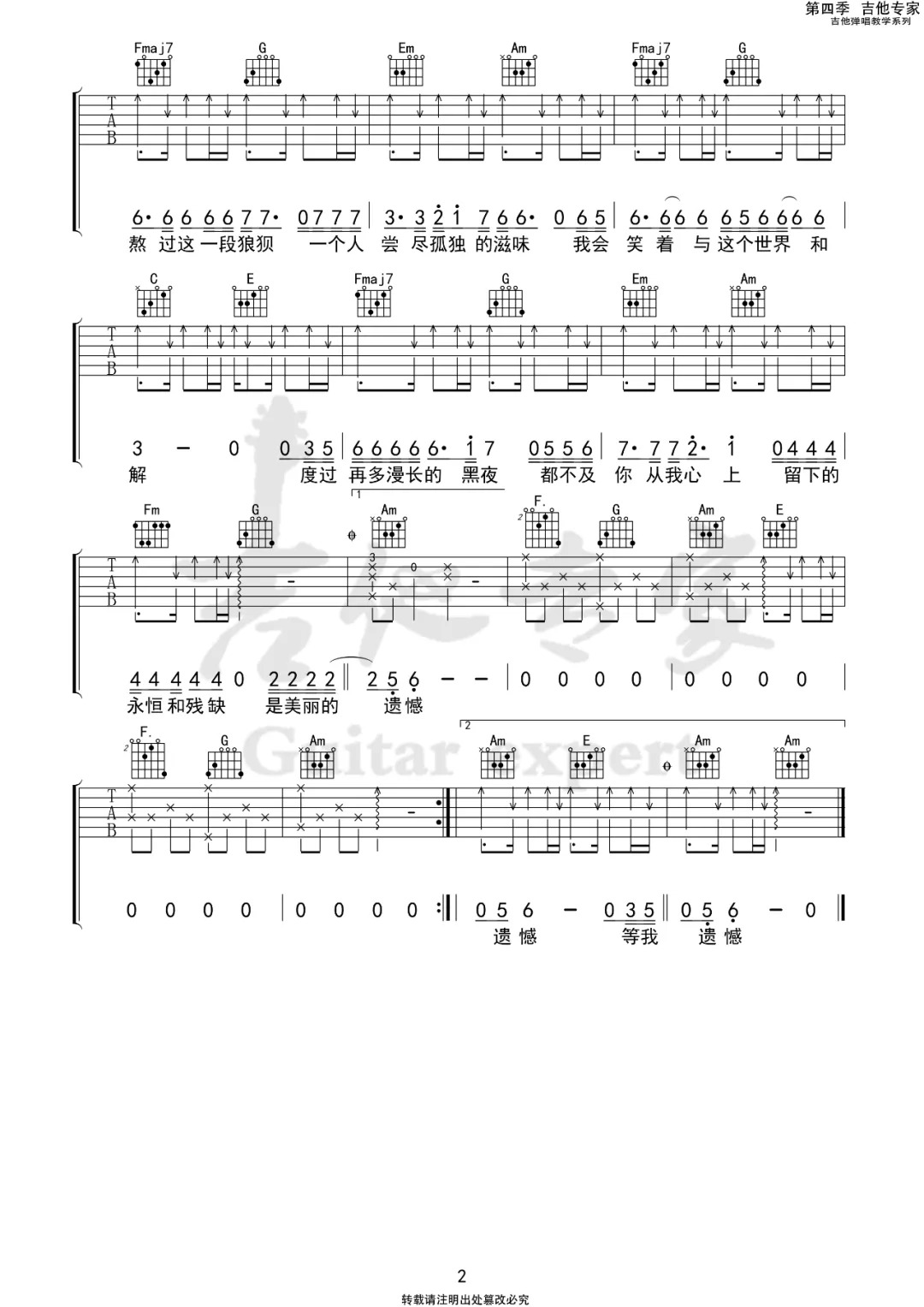 当前位置:琴谱网>吉他弹唱>美丽的遗憾
