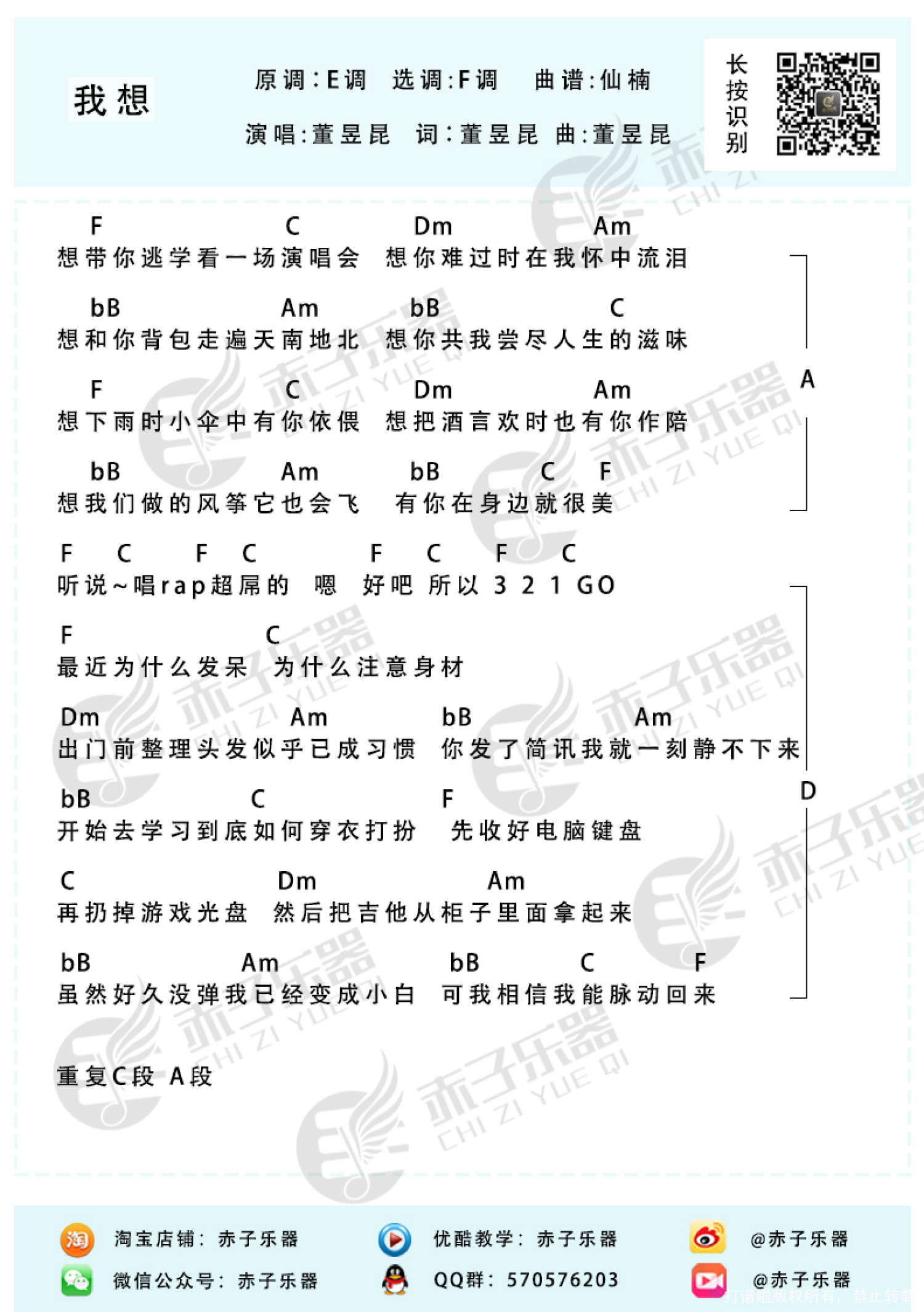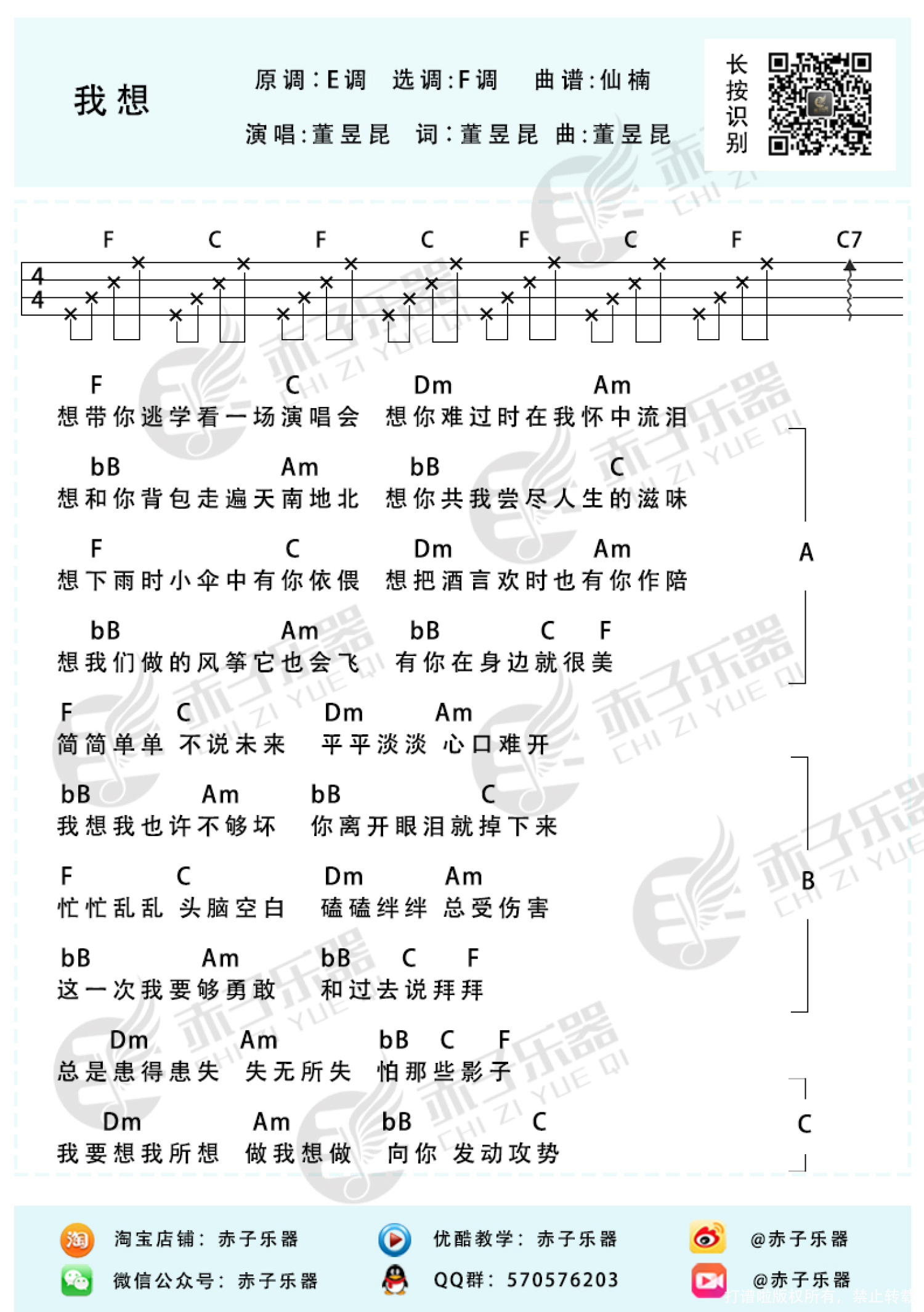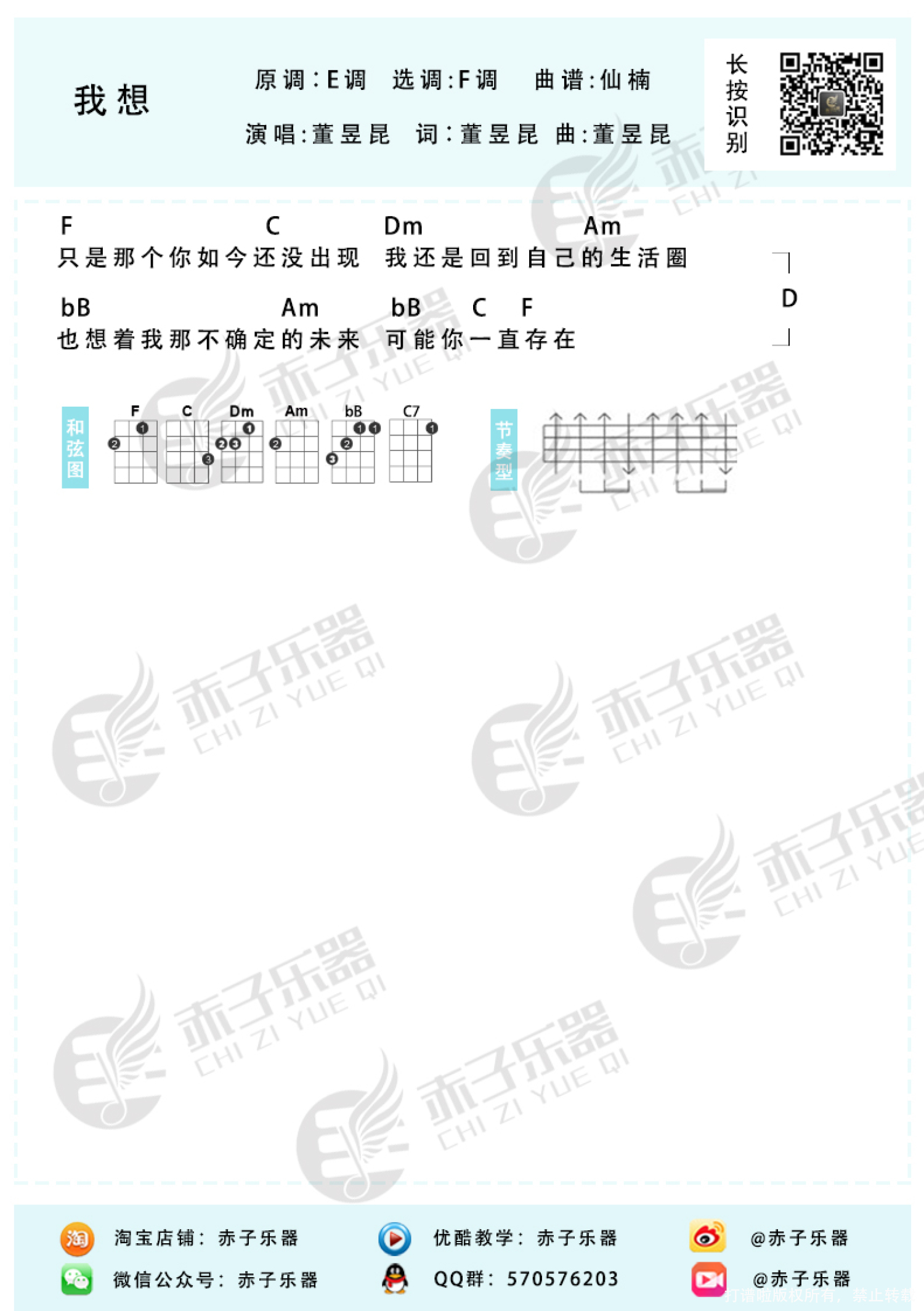 我想尤克里里谱 - 董昱坤