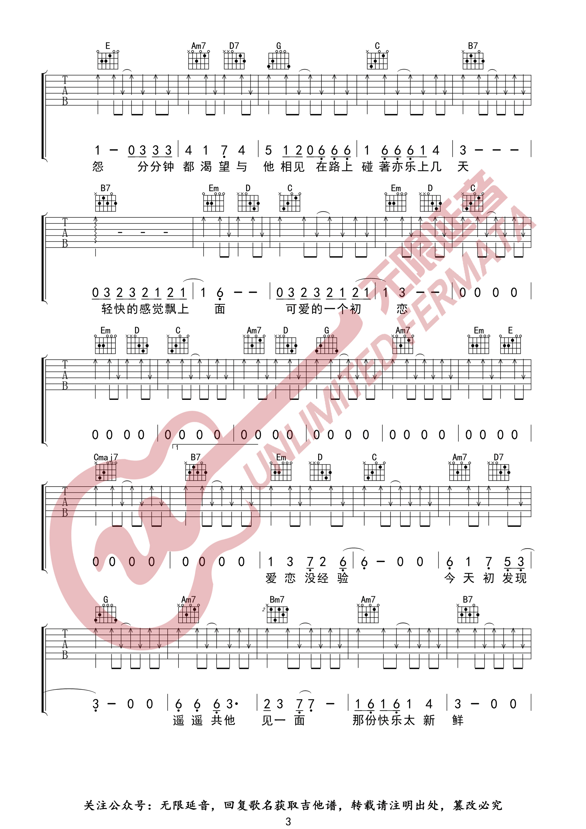 曲谱介绍: 回春丹乐队《初恋》吉他弹唱谱,采用G调指法编配,共有4张高清图谱。