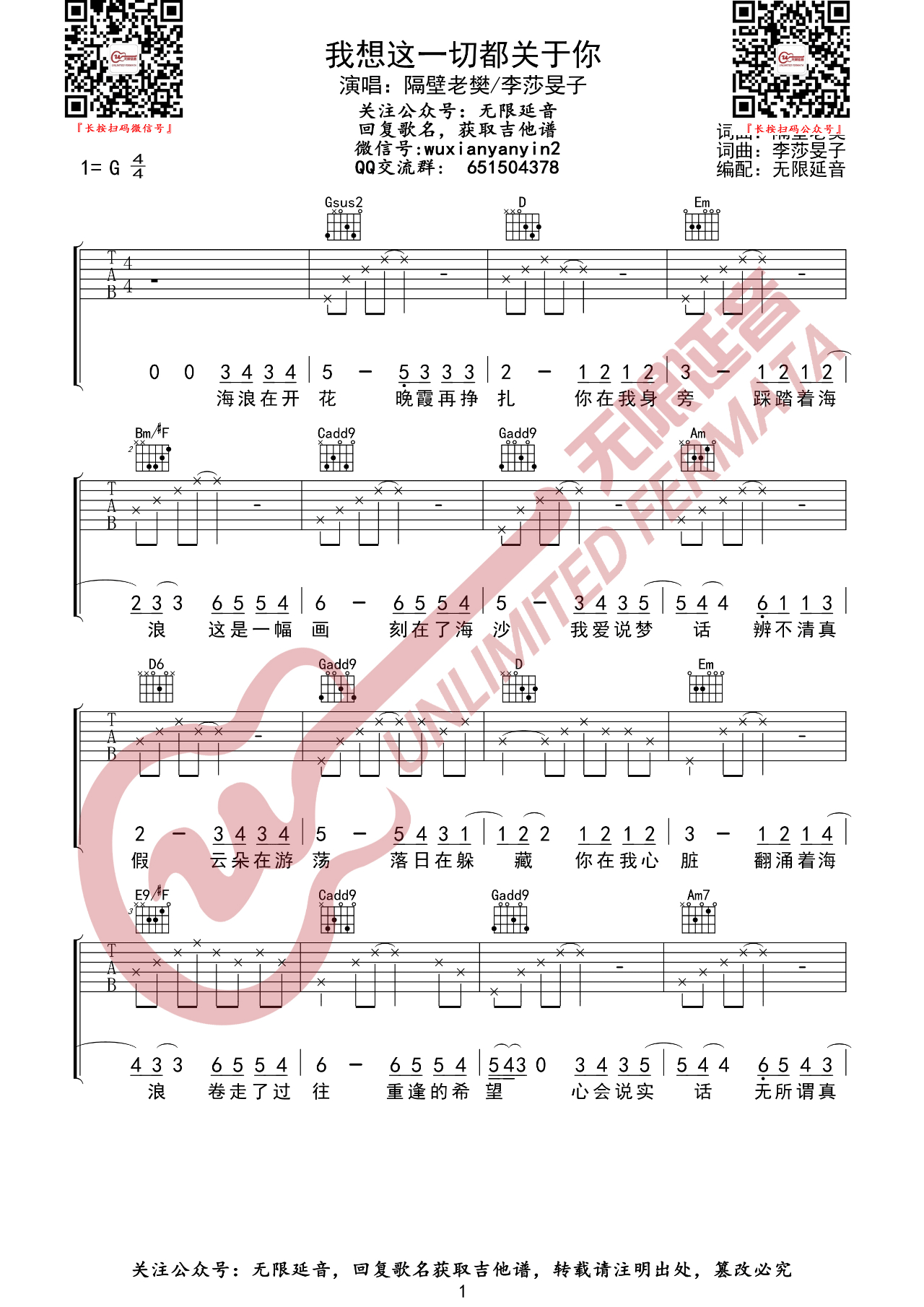 我想这一切都关于你吉他谱 - 隔壁老樊/李莎旻子 - G调吉他弹唱谱