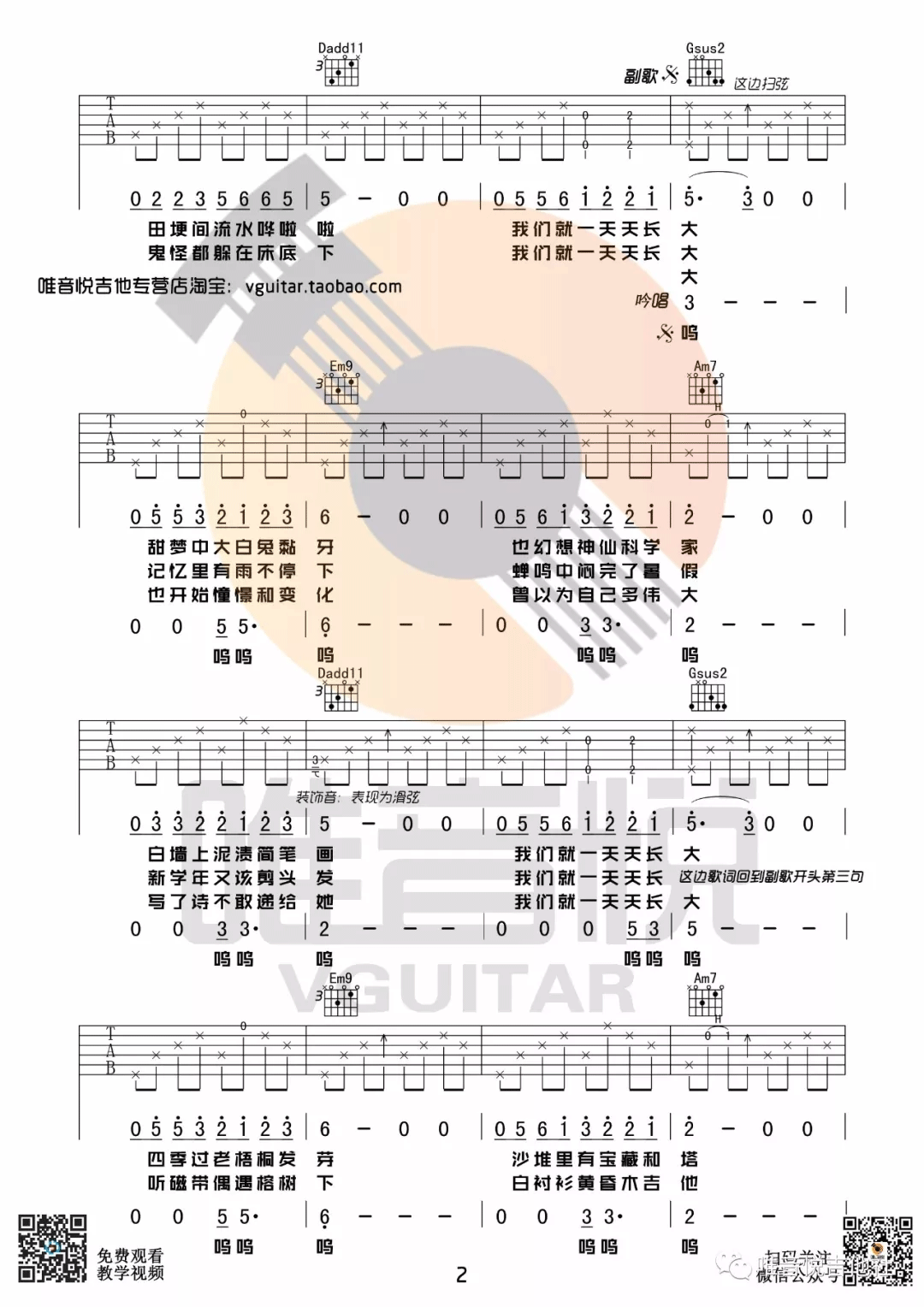 曲谱介绍: 刘昊霖《儿时》吉他弹唱谱,采用G调指法编配,共有3张高清图谱。